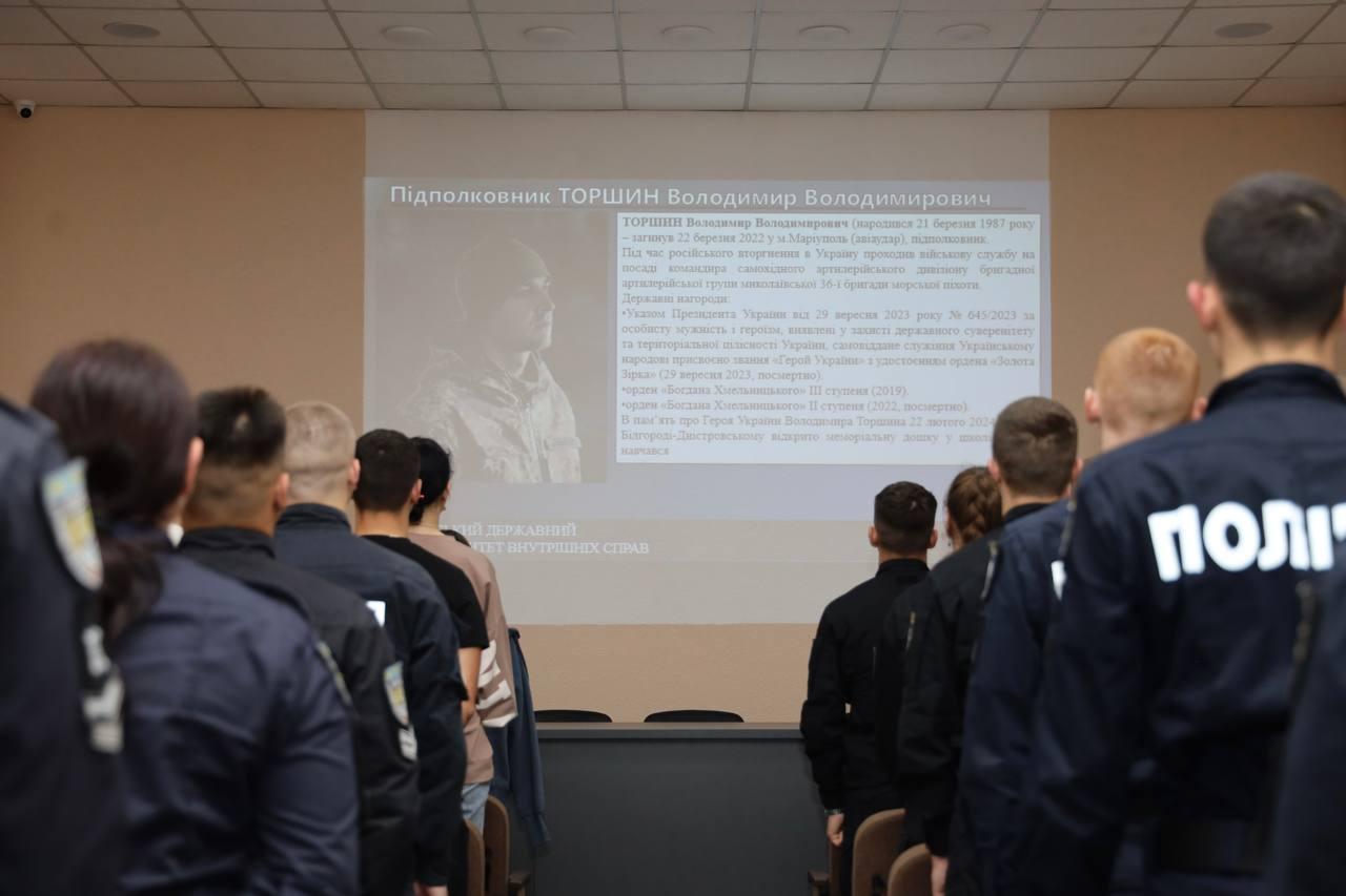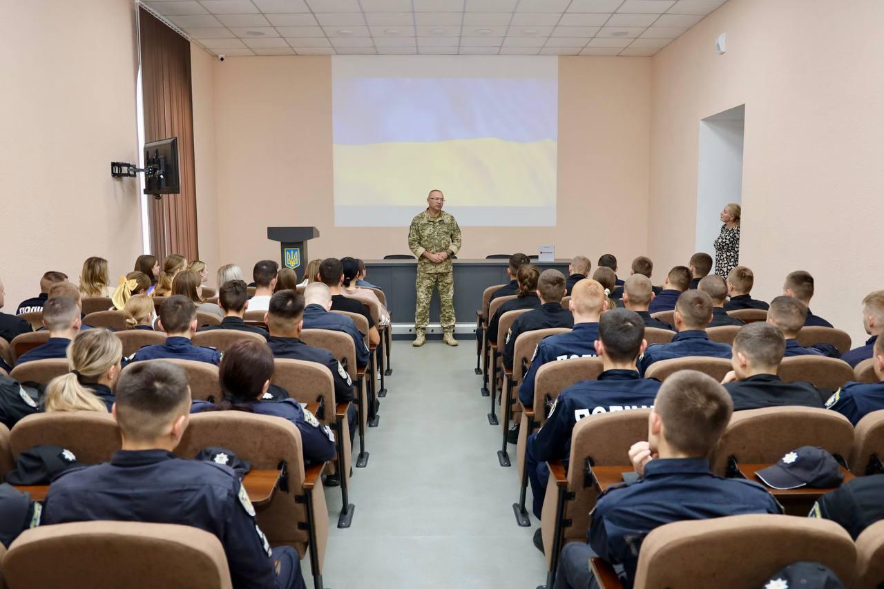 An educational event was held at the OSUIA with the participation of Serhii Hutsaliuk, Head of the Southern Interregional Department of the Ukrainian Institute of National Remembrance, member of the NGO “Veterans Hub Odesa”, junior lieutenant of the Armed Forces of Ukraine, well-known public figure.