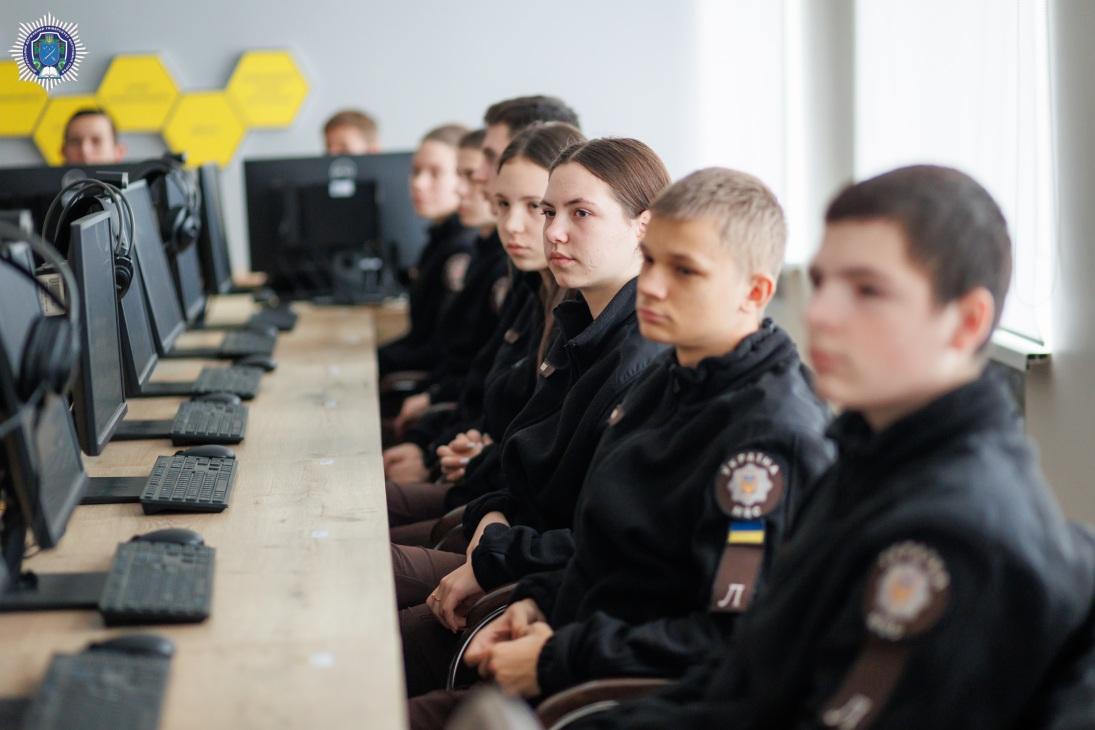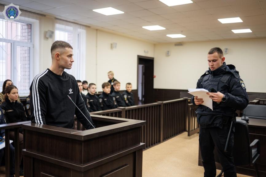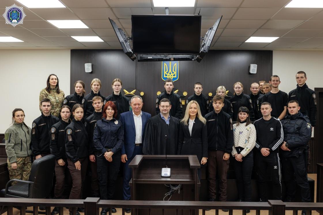 Particular interest was sparked by a discussion with Judge Maksym TAUS, which took place in the specialized "Courtroom" training facility. There, participants conducted a mock trial, with lyceum students and Police Academy trainees preassigning roles among themselves.