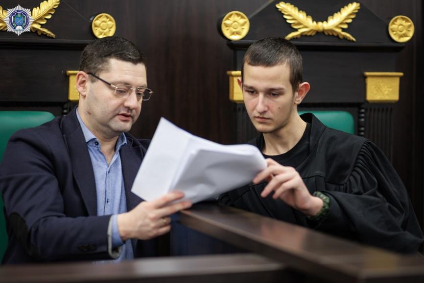 Lyceum student Kyrylo KHRYSTYCH successfully performed the role of judge under the guidance of Maksym TAUS, demonstrating the fundamentals of court proceedings in a practical format.