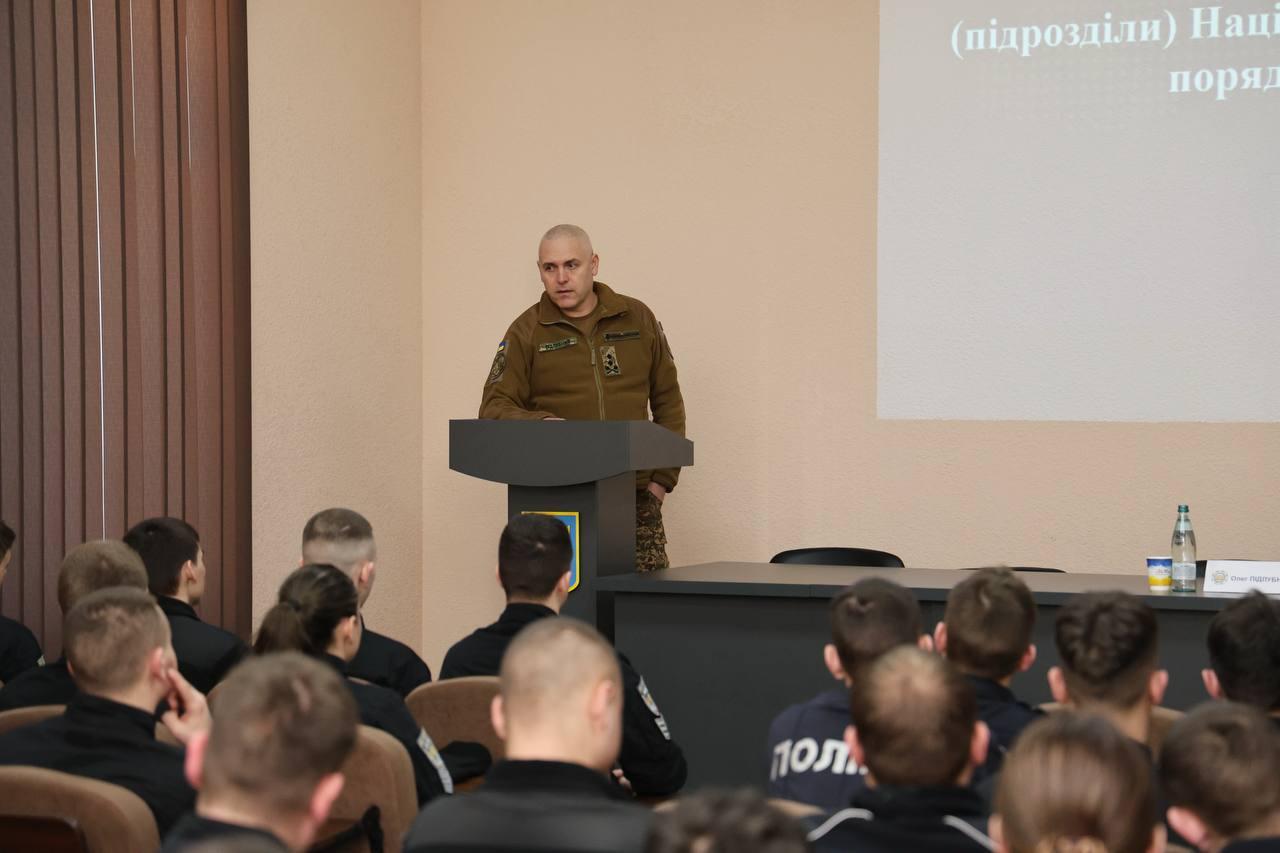 Оn February 9, future police officers had a unique opportunity to gain insights from one of the key leaders of the security sector in Southern Ukraine. Major General Oleh Pidlubnyi, Head of the Southern Odesa Territorial Department of the National Guard of Ukraine, held a meeting with third-year cadets of the Faculty for Training Specialists for Pre-Trial Investigation Bodies of the National Police of Ukraine at Odesa State University of Internal Affairs.