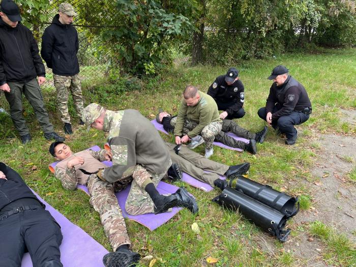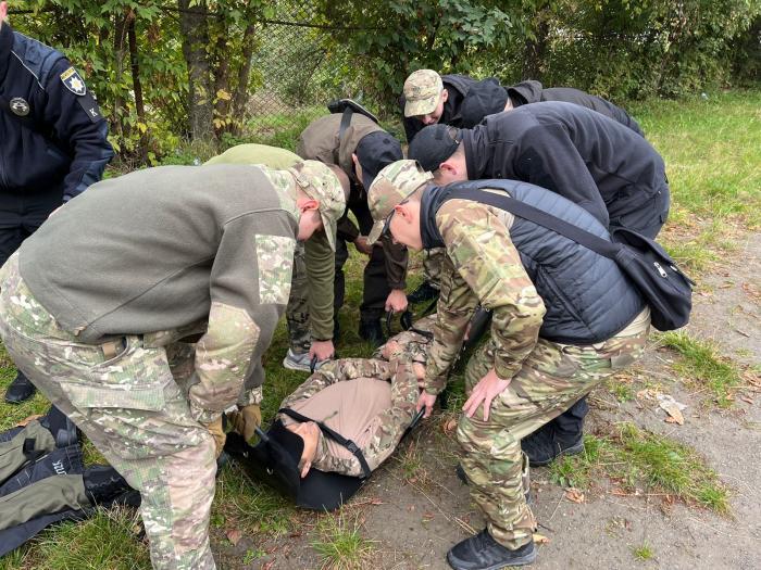 Senior lecturers of the Department of Tactical and Special Training of Kharkiv National University of Internal Affairs Mykhailo BAMBULIAK and Viktor YASKO together with the community police officer of SPOG No. 1 of Kamianets-Podilskyi DPD of the Main Police Department in Khmelnytskyi region Vitalii PARANIUK conducted a binary lesson for students using medical equipment and evacuation means on the topic "M.A.R.C.H." Algorithm"..jpg)