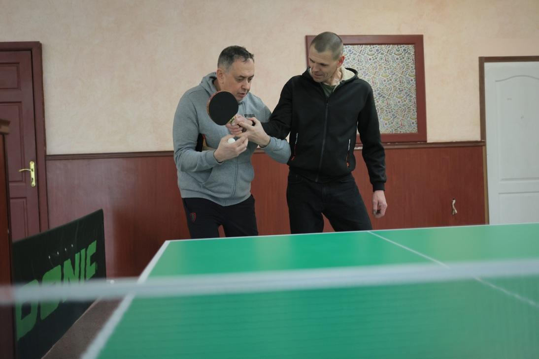 Representatives of the Veterans' Council of Solone Territorial Community (Dnipropetrovsk Region) once again joined the training session. The participants were coached by Vasyl KOVAL, a Ukrainian table tennis champion.