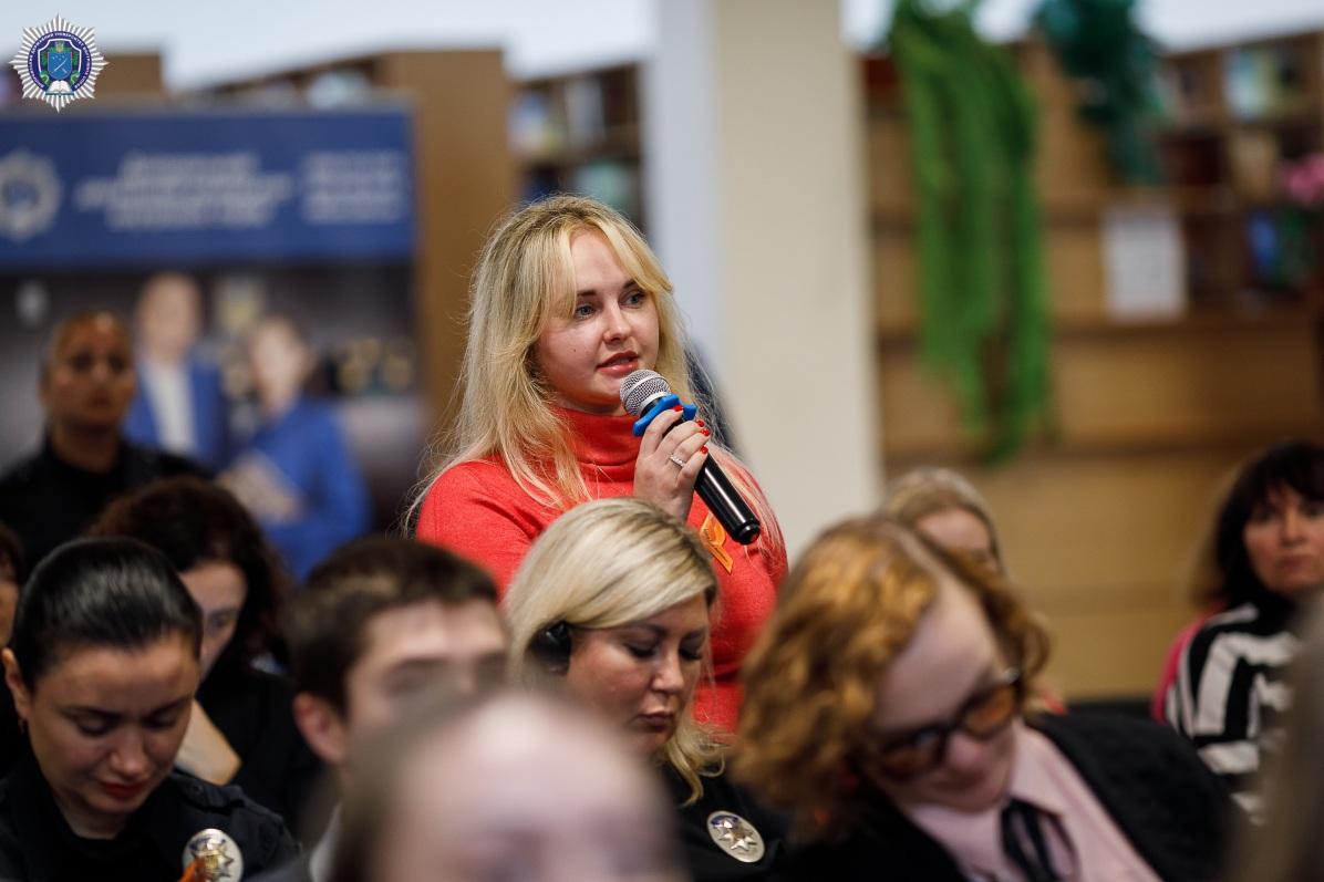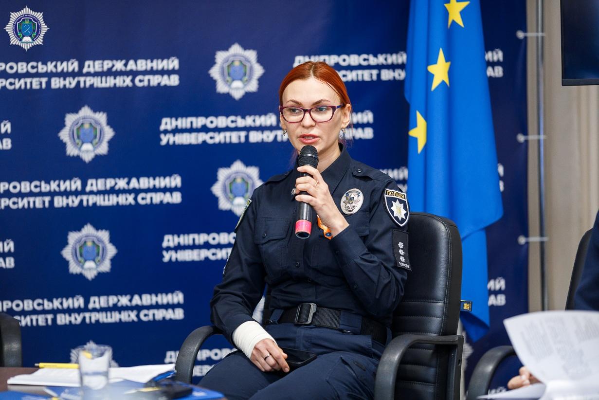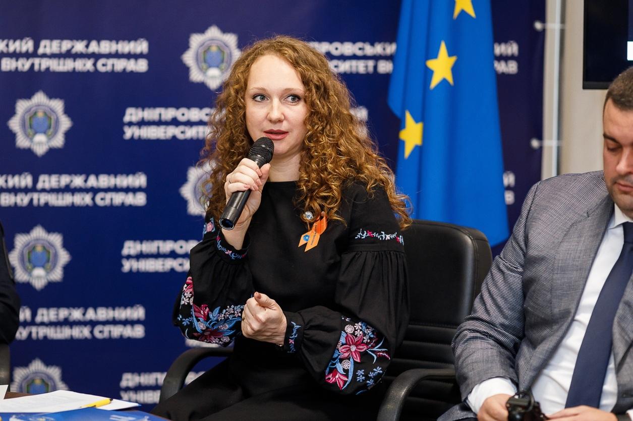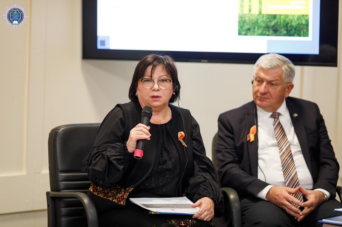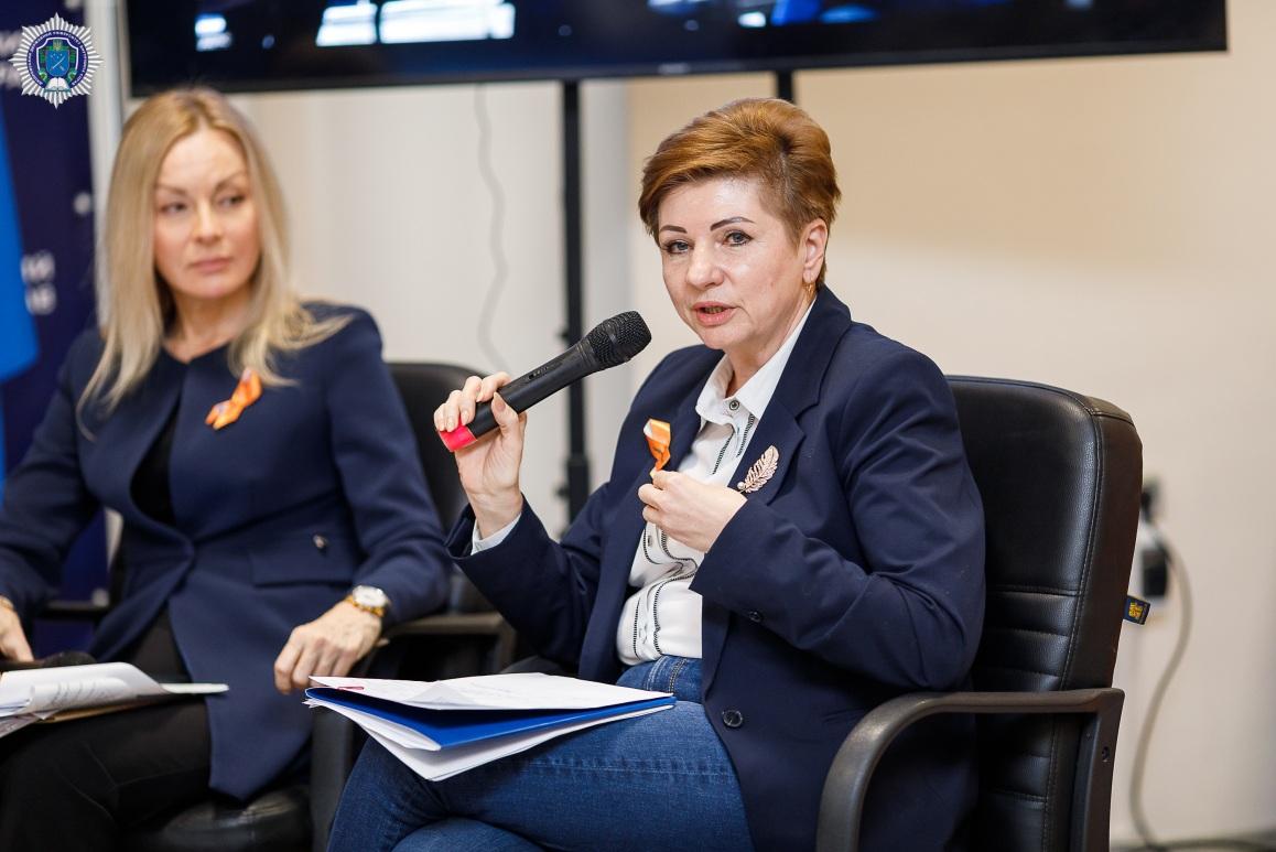 Key speakers of the forum included Olena KRYSHEN, Director of the Department of Social Protection of the Population of the Dnipropetrovsk Regional State Administration, Candidate of Public Administration, Honored Economist of Ukraine; Svitlana SPAZHEVA, Deputy Head of the All-Ukrainian Association of United Territorial Communities, Head of the Dnipropetrovsk Regional Department of the All-Ukrainian Association of UTCs, Head of the Pokrovske Territorial Community, and Head of the Gender Equality Platform; Iryna KOMPANIETS, Head of the Department for Prevention and Counteraction of Domestic Violence of the Patrol Police Department, Police Captain; Karin GÖRANSSON SEDERSTRAND, Program Manager at the Folke Bernadotte Academy in Ukraine, Gender Issues Expert; Christopher ELLIOTT, Adviser on Organized Crime Investigations; Pauline BROSH, Adviser on Conflict-Related Sexual Violence; Vira PROTSIV, Deputy Head of the Department of Educational Safety Organization of the National Police of Ukraine, Police Captain; Ivanna BOIAKIVSKA, Head of the Department of Educational Safety Organization of the Patrol Police Department; Natalia BOKOVA, Head of Public Relations of the Patrol Police Battalion in Kramatorsk and Sloviansk of the Patrol Police Department in the Donetsk Region, Police Captain; Polina KULISH, Senior Inspector of Human Resources of the Patrol Police Battalion in Kramatorsk and Sloviansk of the Patrol Police Department in the Donetsk Region, Police Captain, and Board Member of the Ukrainian Association of Women in Law Enforcement; Kateryna CHYZHYK, Head of the Psychological Space “ProZhYTY” in the Dnipropetrovsk Region; Olga SHULIK, Coordinator of the “Dnipro Region 1325” Coalition, Regional Coordinator of the Project "Women, Peace, Security: Acting Together," Head of the NGO “Common Good,” Trainer on Gender Equality and Gender-Based Violence Prevention, and other experts.