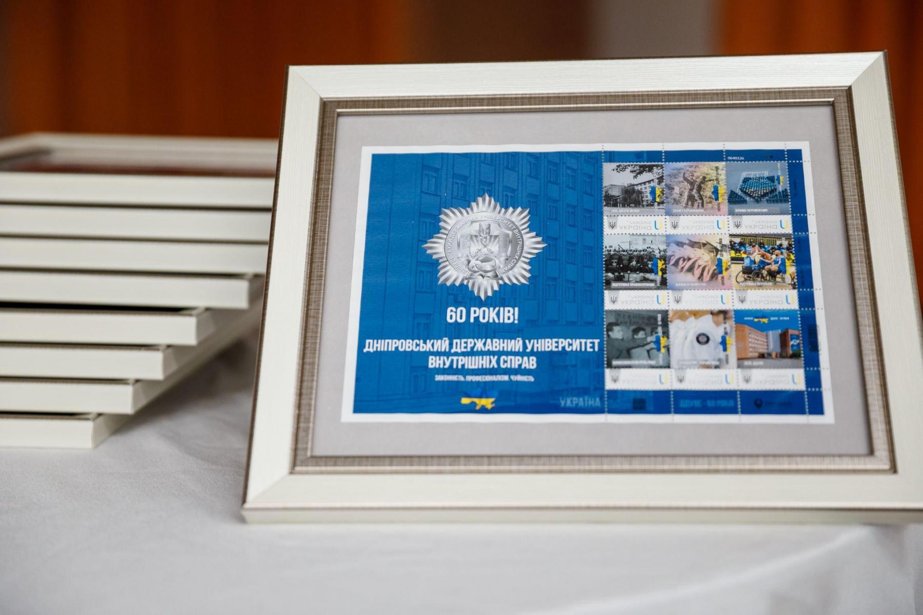 On the occasion of the graduation of specialists for the bodies of the National Police of Ukraine and the celebration of the 60th anniversary of Dnipro State University of Internal Affairs, a postage block “60 Years of DSUIA” was presented. All honored guests took part in the special cancellation of the anniversary stamp.