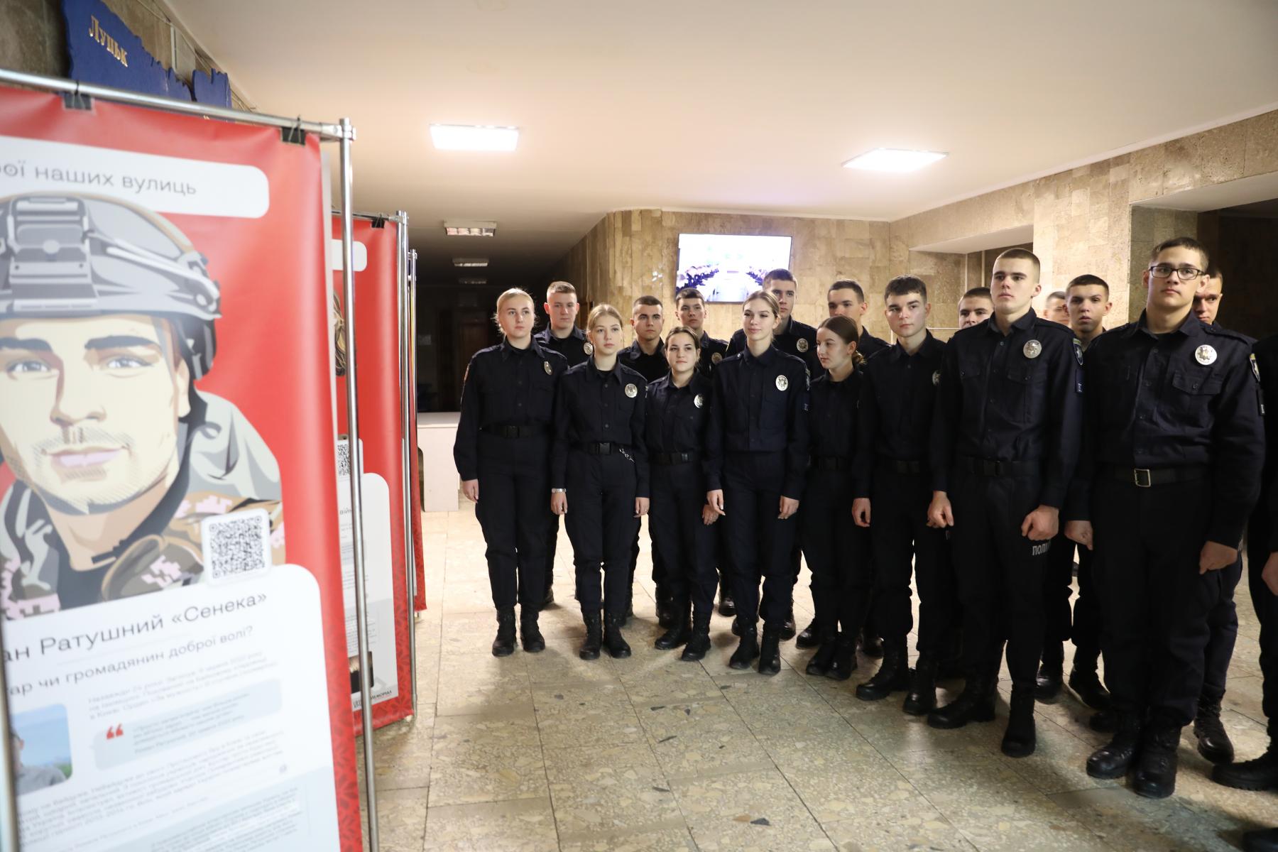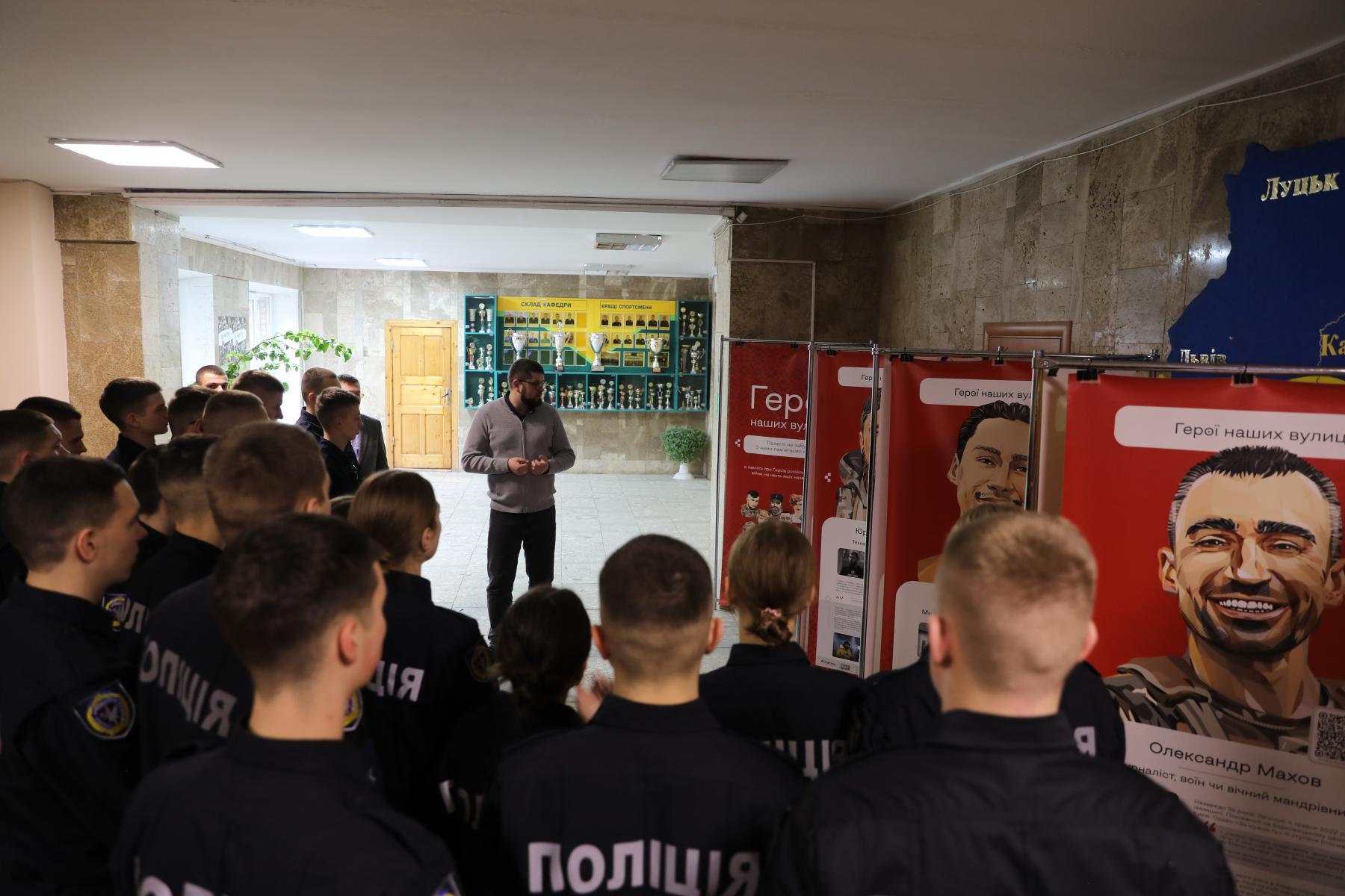 The Rector of the university, Police General of the third rank Valerii SOKURENKO noted that during the Russian military aggression against Ukraine, it is extremely important not to forget about those who defended and are defending our cities: "From the first days of the war, one of the university's priorities has been to provide volunteer assistance to both military and civilian citizens who found themselves in difficult life circumstances. We support our defenders, help the wounded, and assist the families of fallen Heroes. The memory of those who gave their lives for Ukraine will live in our hearts, and their names will be engraved in the history of our cities and villages. This exhibition is another important step in honoring the feat of the defenders."