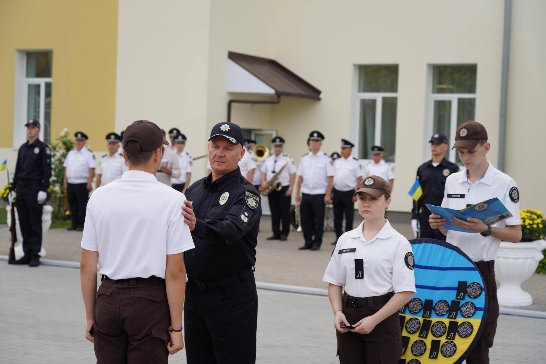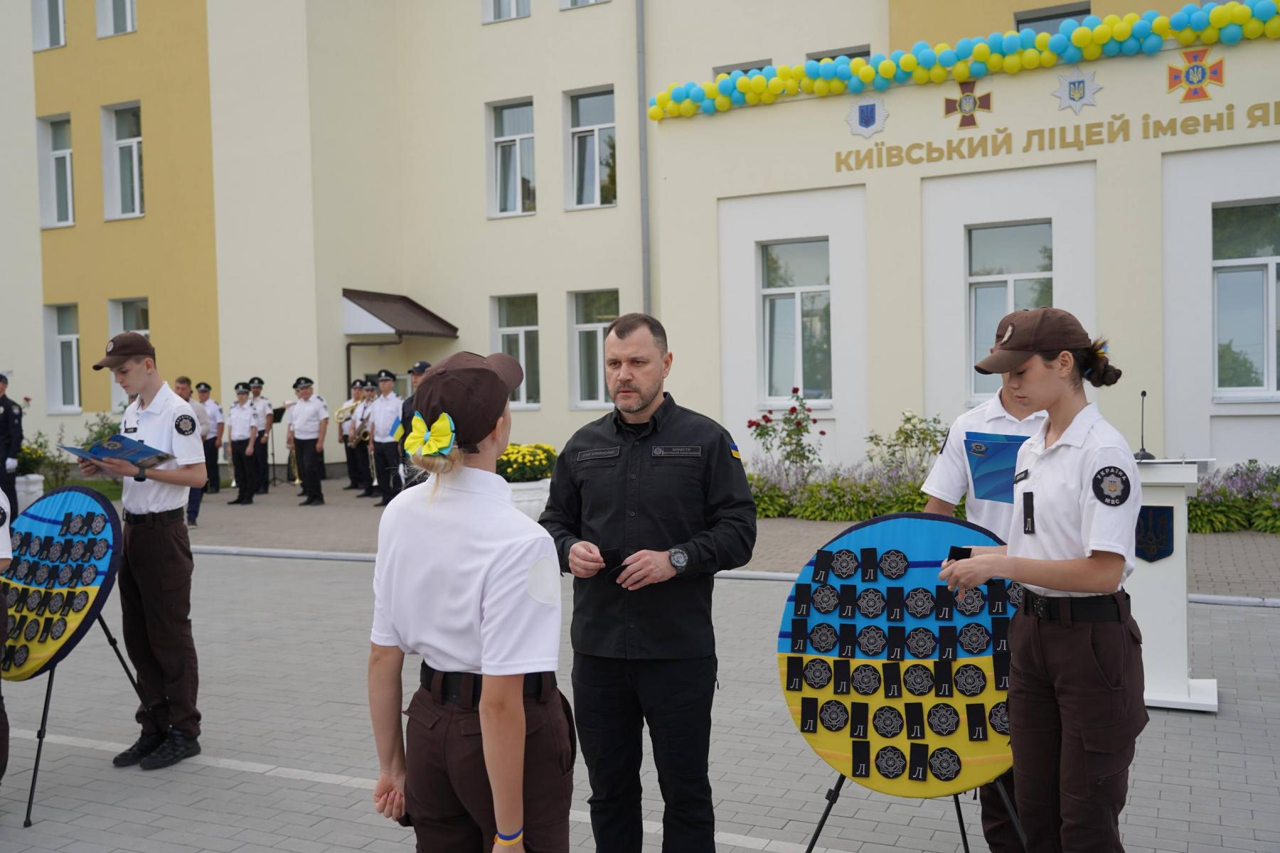 Свято продовжилося урочистим врученням погонів і шевронів ліцеїстів, яке провели Ігор Клименко й ректор НАВС генерал поліції третього рангу Руслан Сербин. Кожен ліцеїст, приймаючи відзнаку, промовляв: «Навчаюся для України!». Це посвята в ліцейську родину та символ відповідальності й честі. До урочистостей долучилися державний секретар МВС Інна Ящук, ветерани російсько-української війни й інструктори навчально-тренувального відділення домедичної підготовки НАВС Ярослав Шаркій (позивний - «Гіпократ») і Максим Валєватий (позивний - «Чур»).