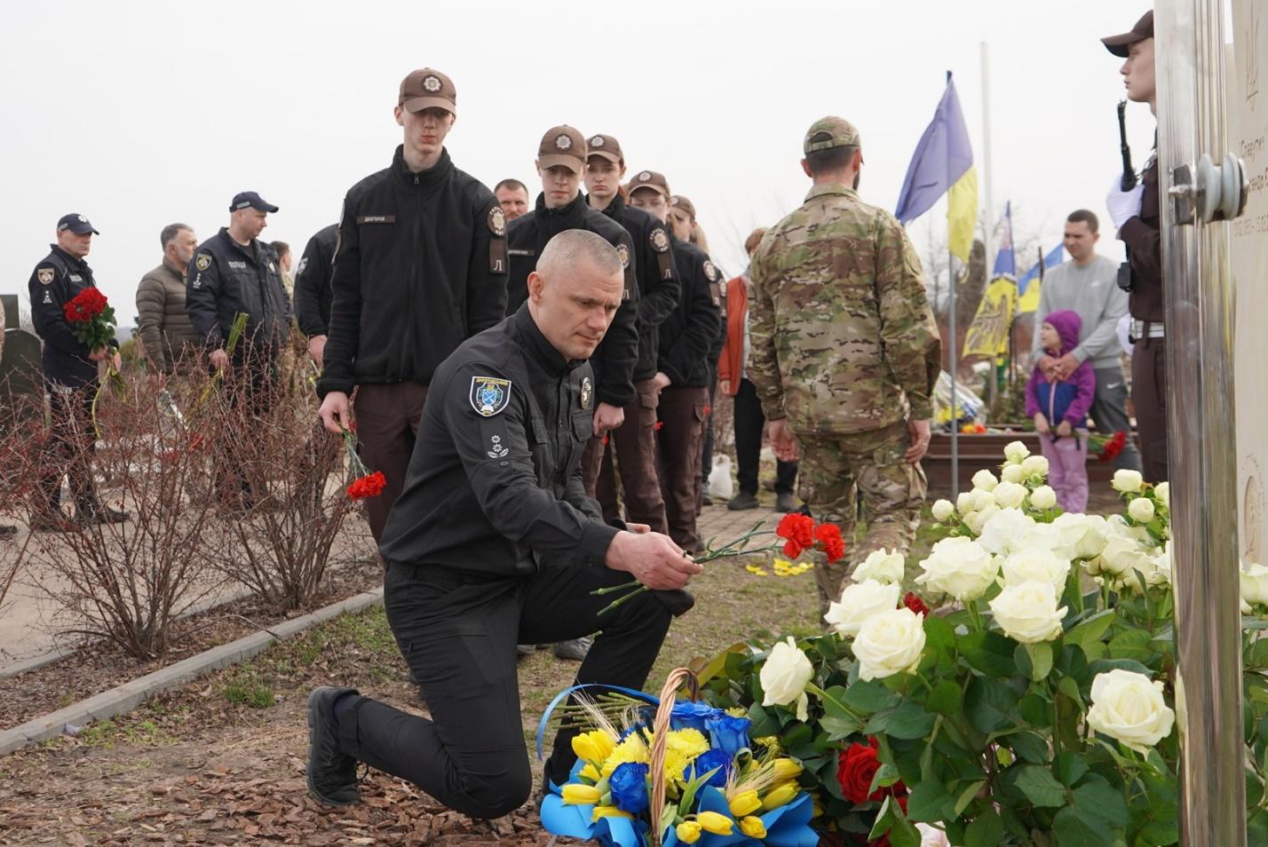 On the anniversary of his death, the lyceum students visited the Krasnopillya Cemetery. The event was attended by the Vice-Rector of DSUIA, Police Lieutenant Colonel Ihor KOVALIOV, the Director of the Lyceum Kyrylo NEDRIA, the family of the fallen Hero, representatives of law enforcement agencies, and his comrades-in-arms.