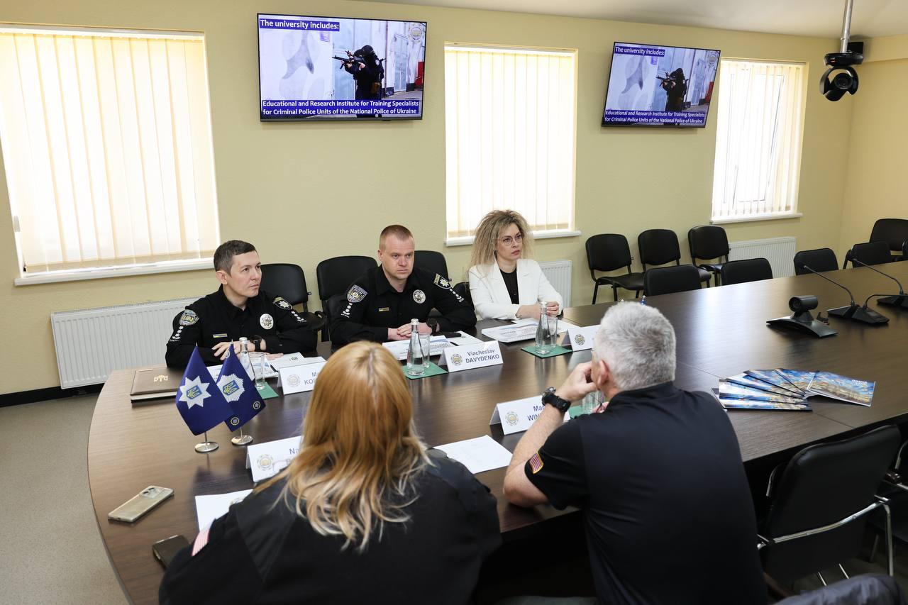 The meeting was attended by University Rector Viacheslav Davydenko and First Vice Rector Maksym Korniienko. During the discussion, the parties addressed current issues related to the development of international cooperation in the field of law enforcement training.