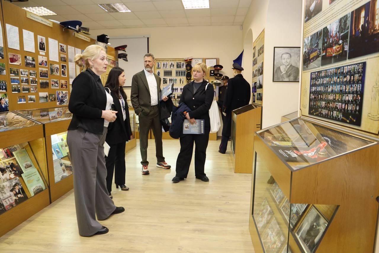 The university rector, Police Colonel Viacheslav Davydenko, and the first vice-rector, Police Colonel Maksym Korniienko, presented the university's potential as an educational, scientific, and practical center open to international initiatives and projects.