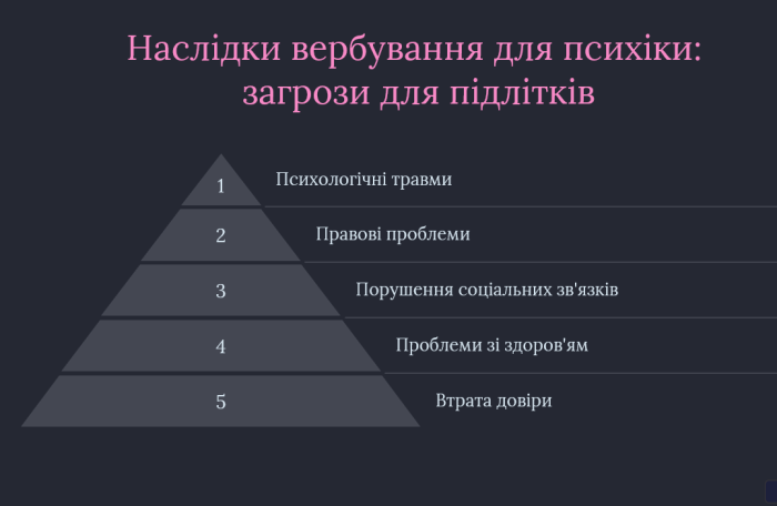 The speakers paid special attention to the vulnerability of adolescents, whose values and worldview are still being formed. They emphasized that social networks have become a key tool for the dissemination of manipulative content that can be used to recruit adolescents. The mechanisms of influence, the role of social networks, the psychological consequences of recruitment were revealed in detail, and the importance of joint responsibility in countering this phenomenon was emphasized.