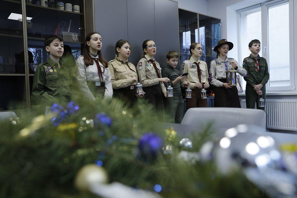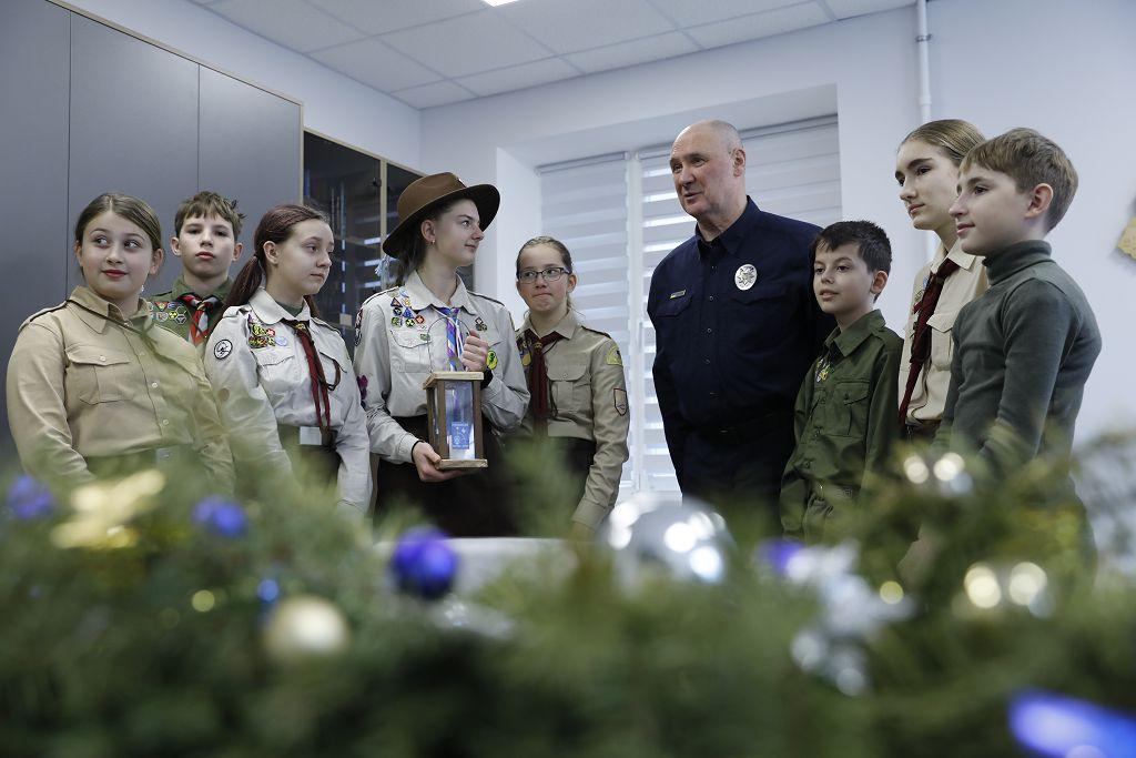 Representatives of the National Scout Organization of Ukraine «Plast» delivered the Bethlehem Peace Light to Kharkiv National University of Internal Affairs. Cadets and university staff participated in the ceremony to adopt the symbol of peace, goodness and unity, what is traditionally spread in Ukraine on the eve of the Christmas holidays.