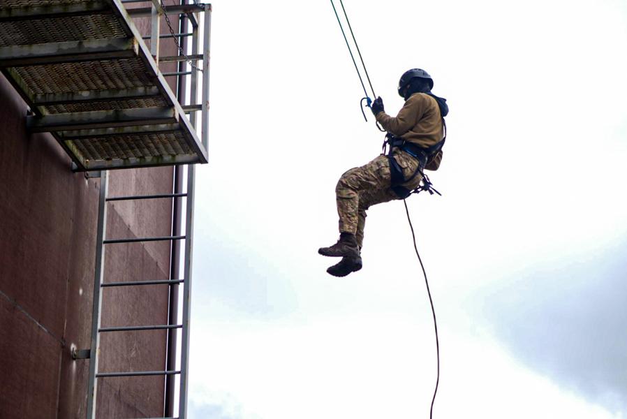 Курсанти груп спеціального призначення Національної академії Національної гвардії України проходять курси з висотної підготовки під керівництвом інструкторів, які мають бойовий досвід.