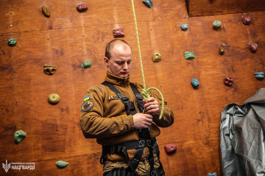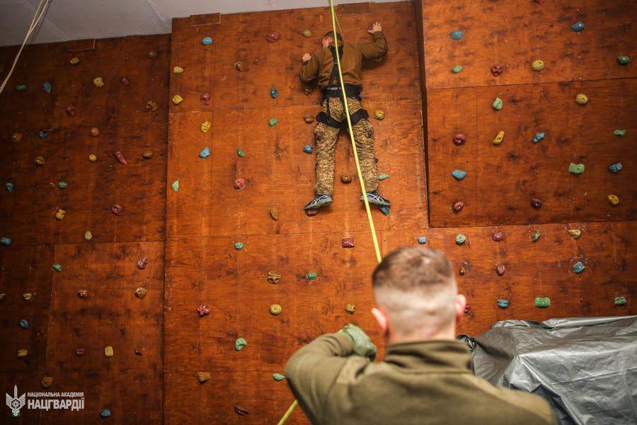 Під час занять вони відпрацьовують алгоритми дій у складних та потенційно небезпечних умовах. На скеледромі гвардійці долають ділянки різного рівня складності, вдосконалюють техніку підйому та спуску, а також відпрацьовують взаємодію в парі. Майбутні офіцери виконують вправи з використанням спеціального альпіністського спорядження.