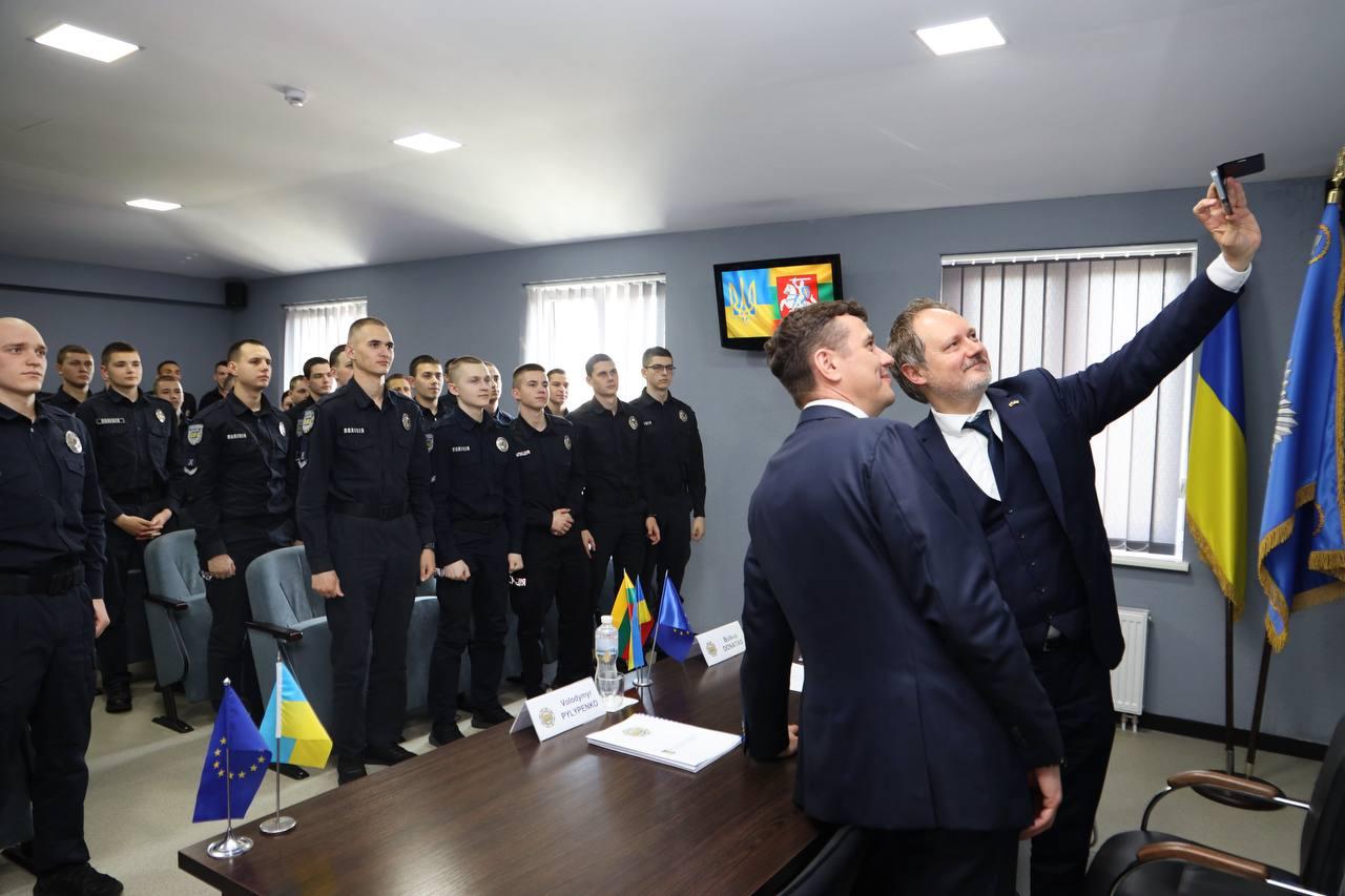 Within the framework of the official visit, the guests of honor met with cadets of the faculty of training specialists for the pre-trial investigation bodies of the NPU. Mr. Butkus delivered a lecture on international cooperation, the challenges of modernity in the field of security and the role of youth in the formation of the rule of law.