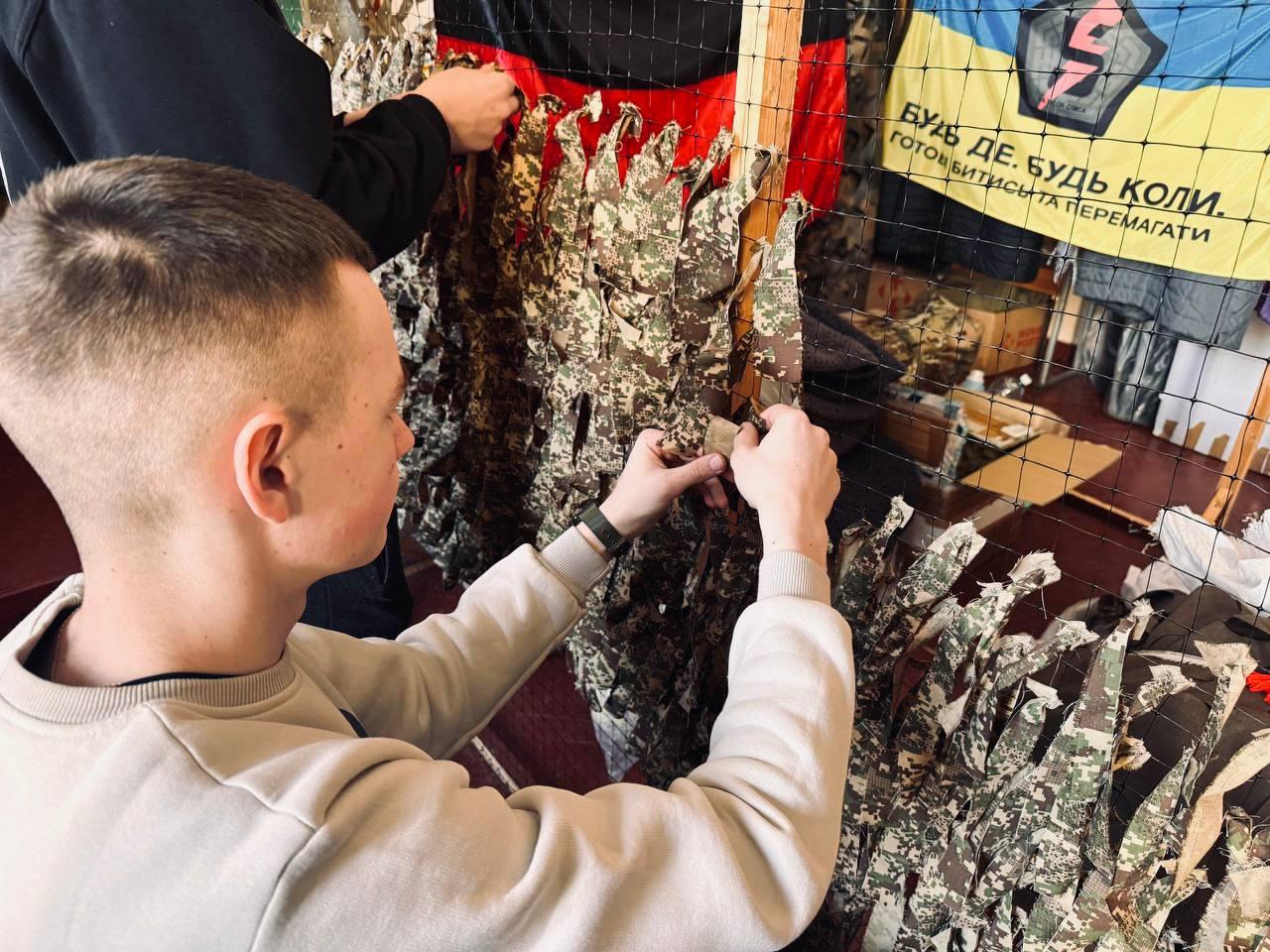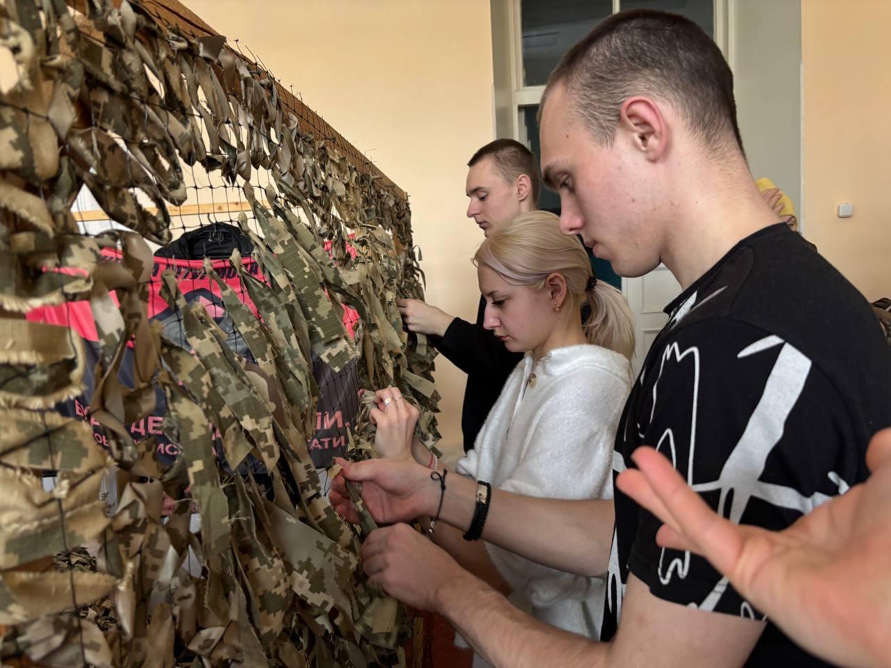 Weaving camouflage nets by students of Sumy branch of KhNUIA remains one of the extremely important initiatives. Every day, the branch volunteers make their significant contribution to the common cause. Only in recent days, the cadets have made two camouflage nets with their own hands, which have already been transferred to the front. The servicemen, having received this help, sent touching feedback. “When you hold a net woven with love in your hands, you understand that the whole country is behind you. This adds strength and motivation,” they share in their video messages.