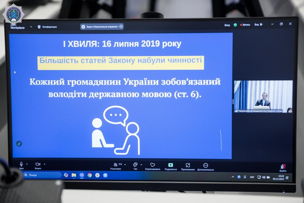 During the meeting, participants discussed key provisions of the legislation ensuring the functioning of the Ukrainian language as the state language. Special attention was given to the legal regulation of language issues in Ukraine, the realization of the human right to use the language, mechanisms for protecting the right to the state language, and the role of youth in promoting and safeguarding Ukrainian. Taras KREMEN also elaborated on response algorithms for violations of language legislation.