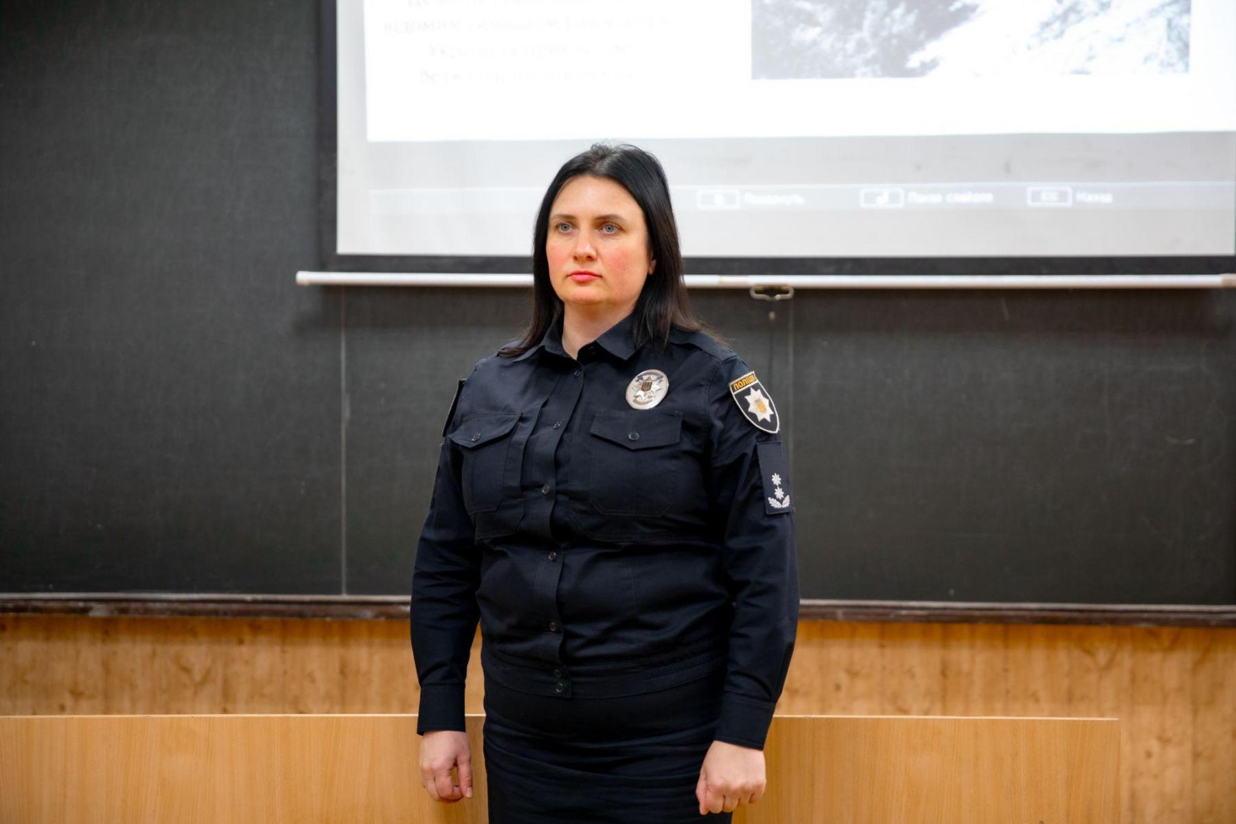 The lecture for the cadets was prepared by the Associate Professor of the Department of Theory and History of State and Law, Constitutional Law and Human Rights, Lieutenant Colonel of Police Yulia Zavhorodnia.