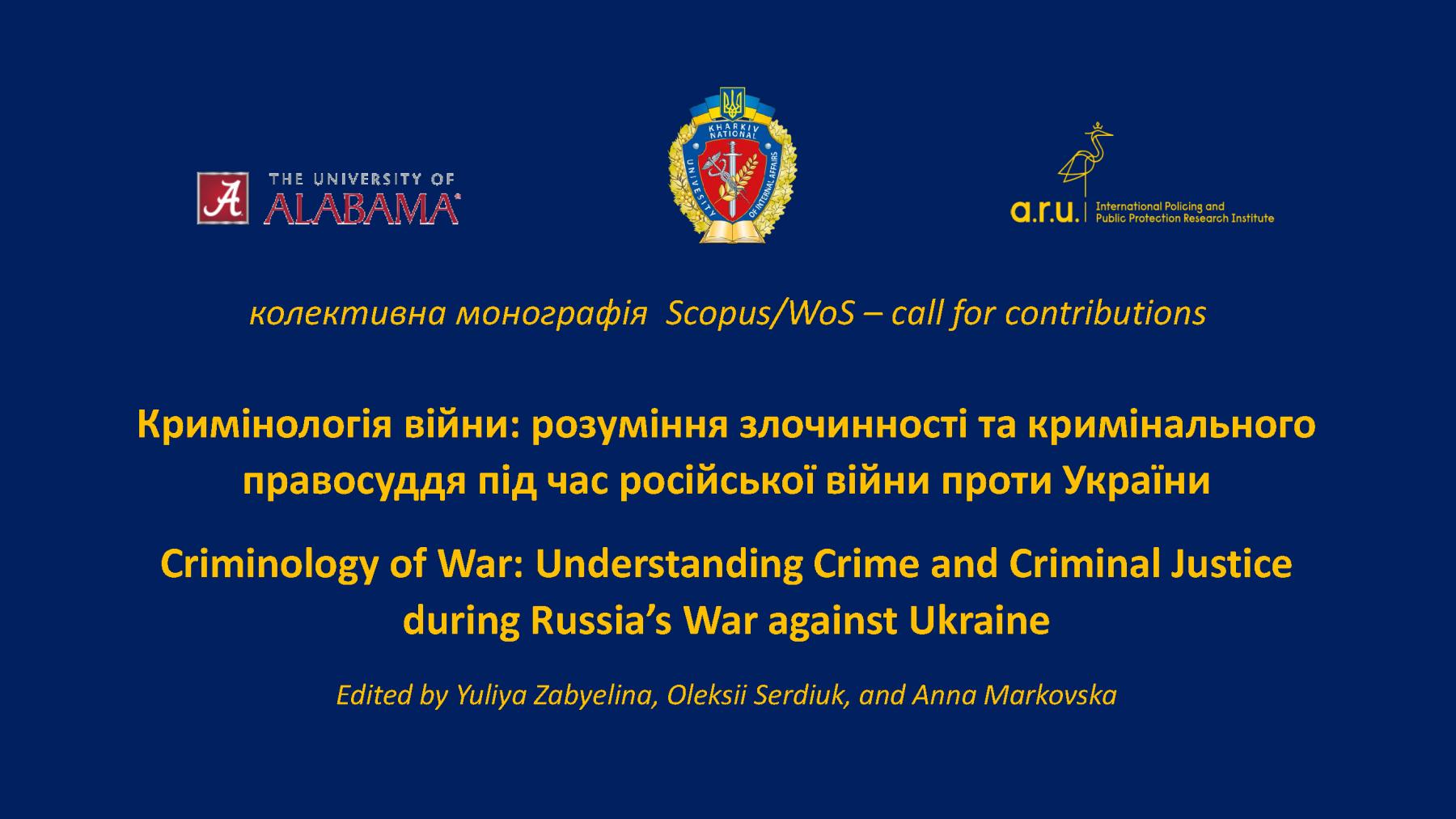We invite authors to submit applications to the collective monograph “Criminology of War: Understanding Crime and Criminal Justice during Russia's War against Ukraine”.