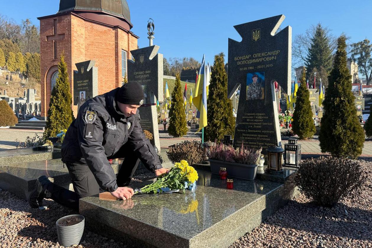 Представники Ради курсантсько-студентського самоврядування Львівського державного університету внутрішніх справ вшанували пам’ять воїнів хвилиною мовчання.
