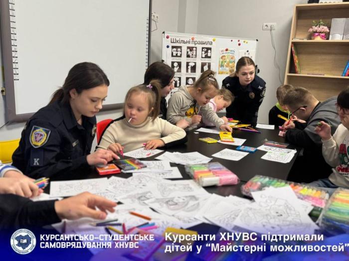 Representatives of the Cadet and Student Self-Government of Kharkiv National University of Internal Affairs visited children with Down syndrome in the "Workshop of Opportunities" created by the NGO "Vinnytsia DOWN SYNDROME". During the meeting, they gave symbolic gifts to the children and together with them took part in the games, which created an atmosphere of warmth, joy and trust.