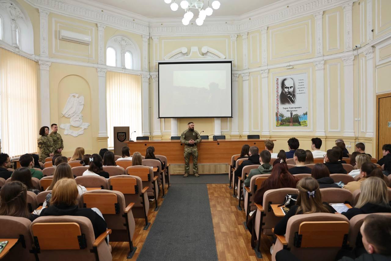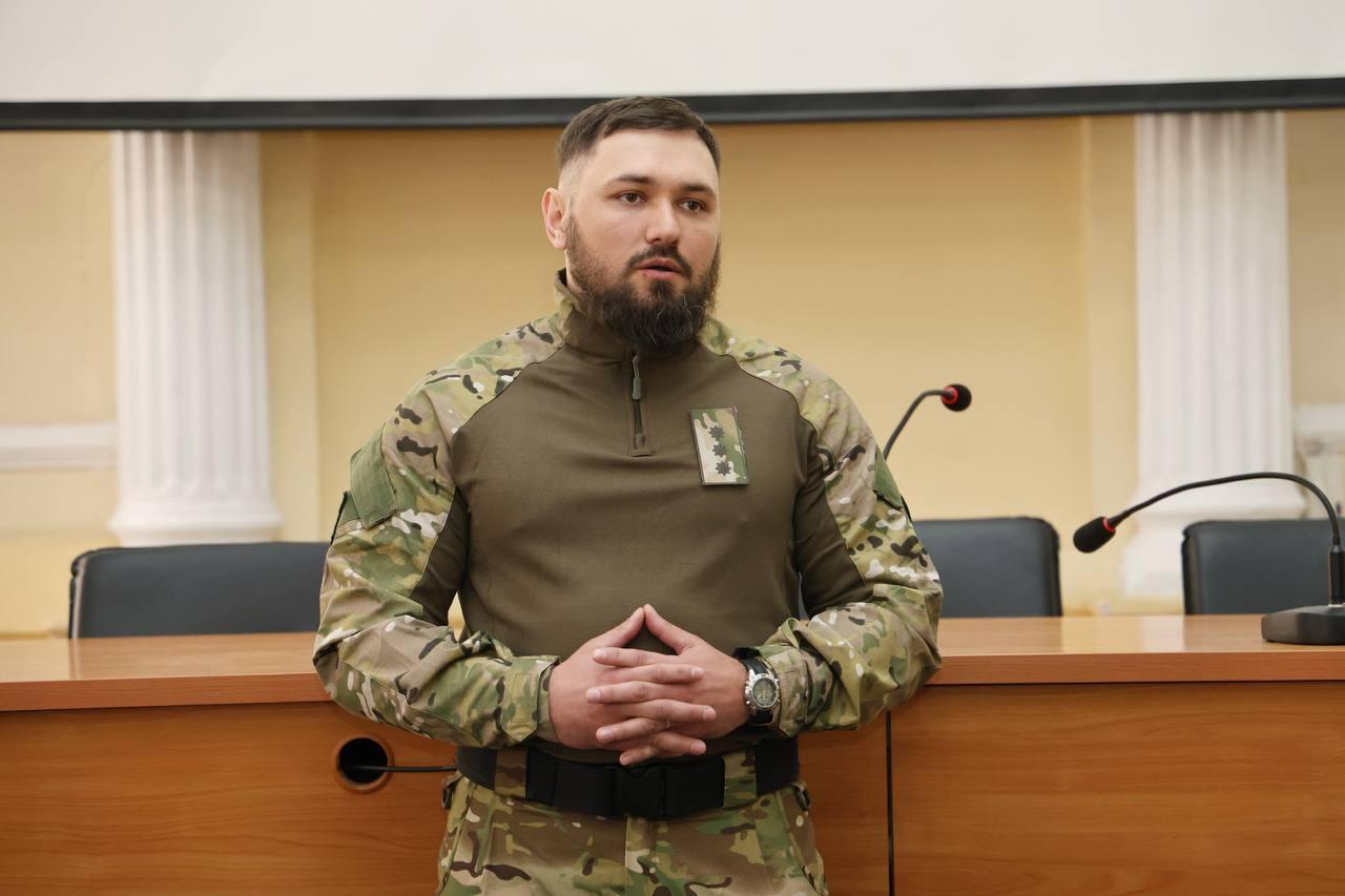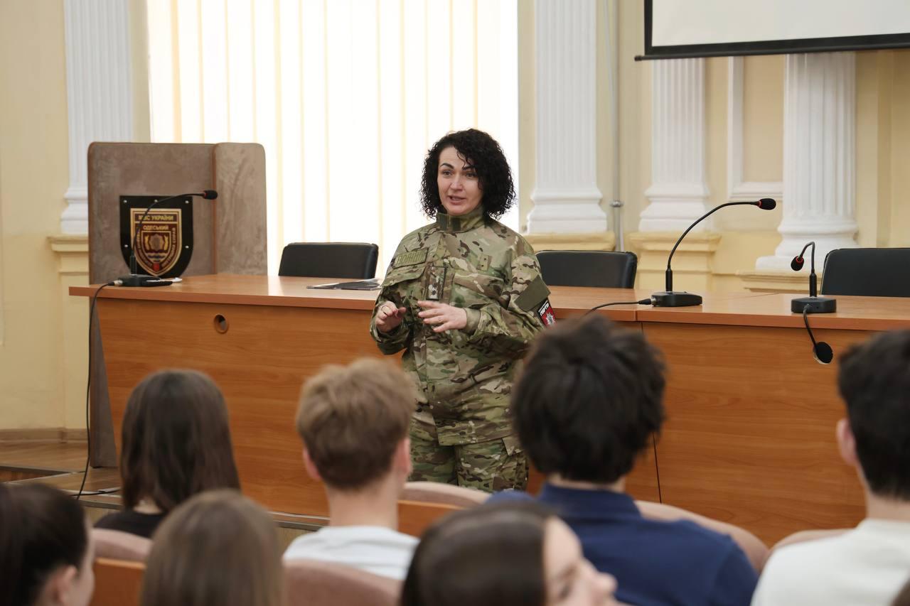 Acting Senior Psychologist of the Human Resources Department at Special Purpose Police Directorate № 2 (the «Tsunami» Assault Regiment), Police Sergeant Petro Tkach, familiarized the students with the specifics of service in the unit and spoke about the path to becoming a police officer.