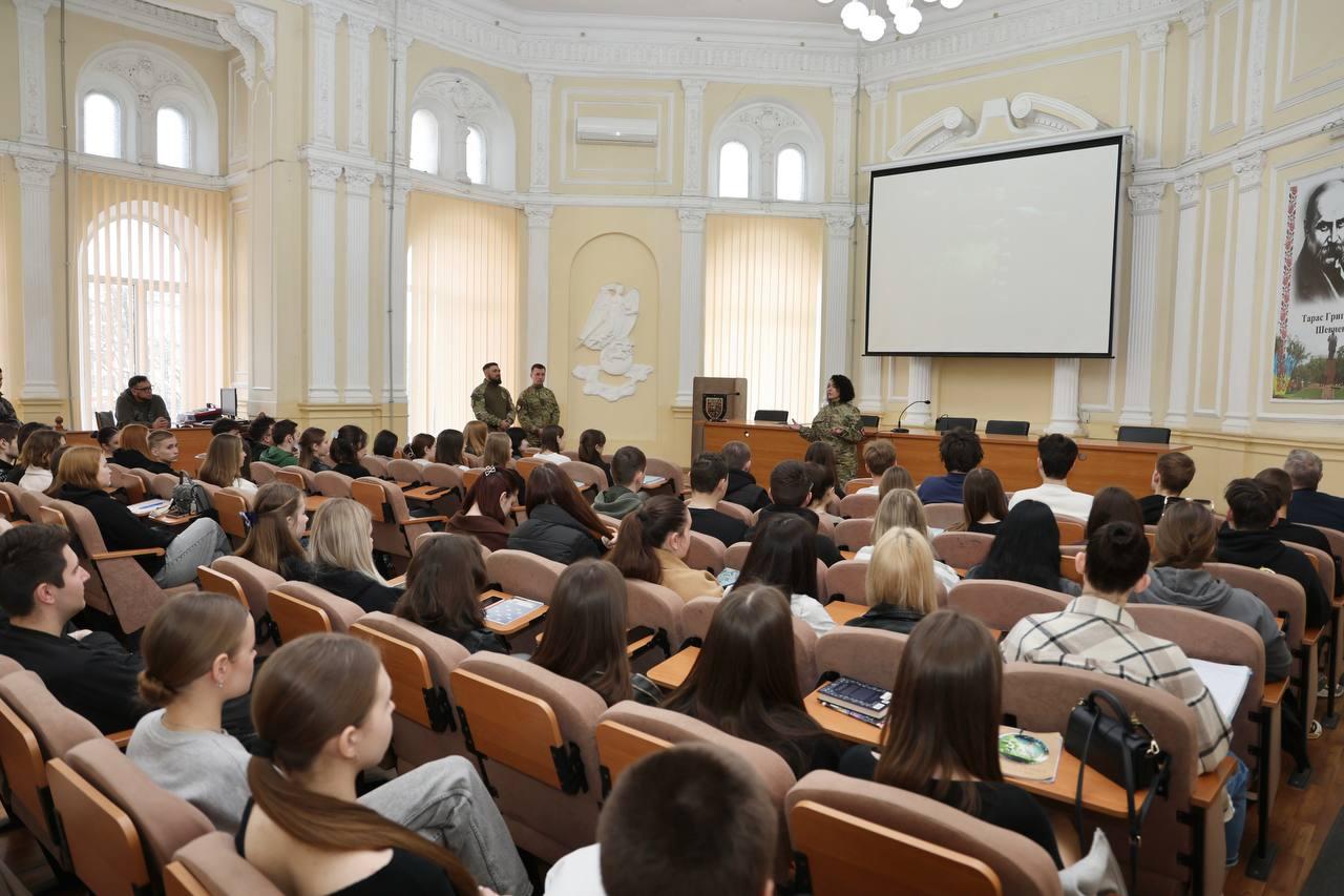 The Institute of Law and Security at Odesa State University of Internal Affairs hosted a substantive and inspiring meeting between students majoring in «Law Enforcement» and representatives of the «Tsunami» Assault Regiment of the «Liut» Joint Assault Brigade of the National Police of Ukraine.