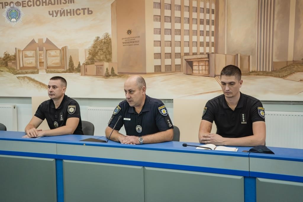 Керівники факультетів привітали першокурсників зі вступом до Дніпропетровського державного університету внутрішніх справ та офіційним початком навчального року. Зокрема розповіли про спецкурс із основ курсантського життя, який юнаки та дівчата проходитимуть упродовж двох тижнів.