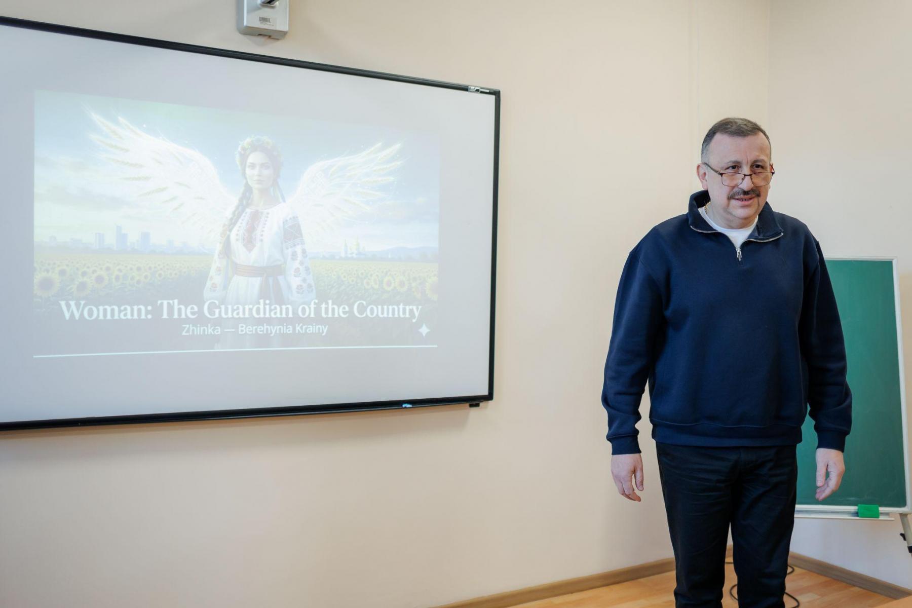 З вітальним словом виступив професор кафедри мовної підготовки Володимир Краснопольський, який наголосив на важливості проведення подібних заходів для усвідомлення ролі жінки-правоохоронця у світовому масштабі.