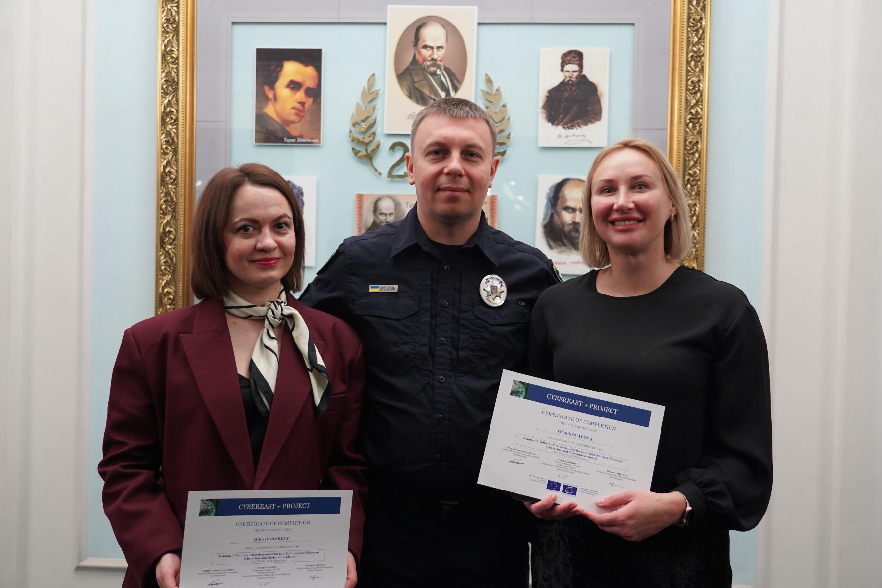 Декан факультету підготовки фахівців для підрозділів досудового розслідування Ольга Ковальова і доцент кафедри оперативно-розшукової діяльності та інформаційної безпеки Ольга Габорець Донецького державного університету внутрішніх справ взяли участь у Тренінгу першого реагування для правоохоронних органів з питань кіберзлочинності та електронних доказів у межах проєкту Ради Європи «CyberEast+».