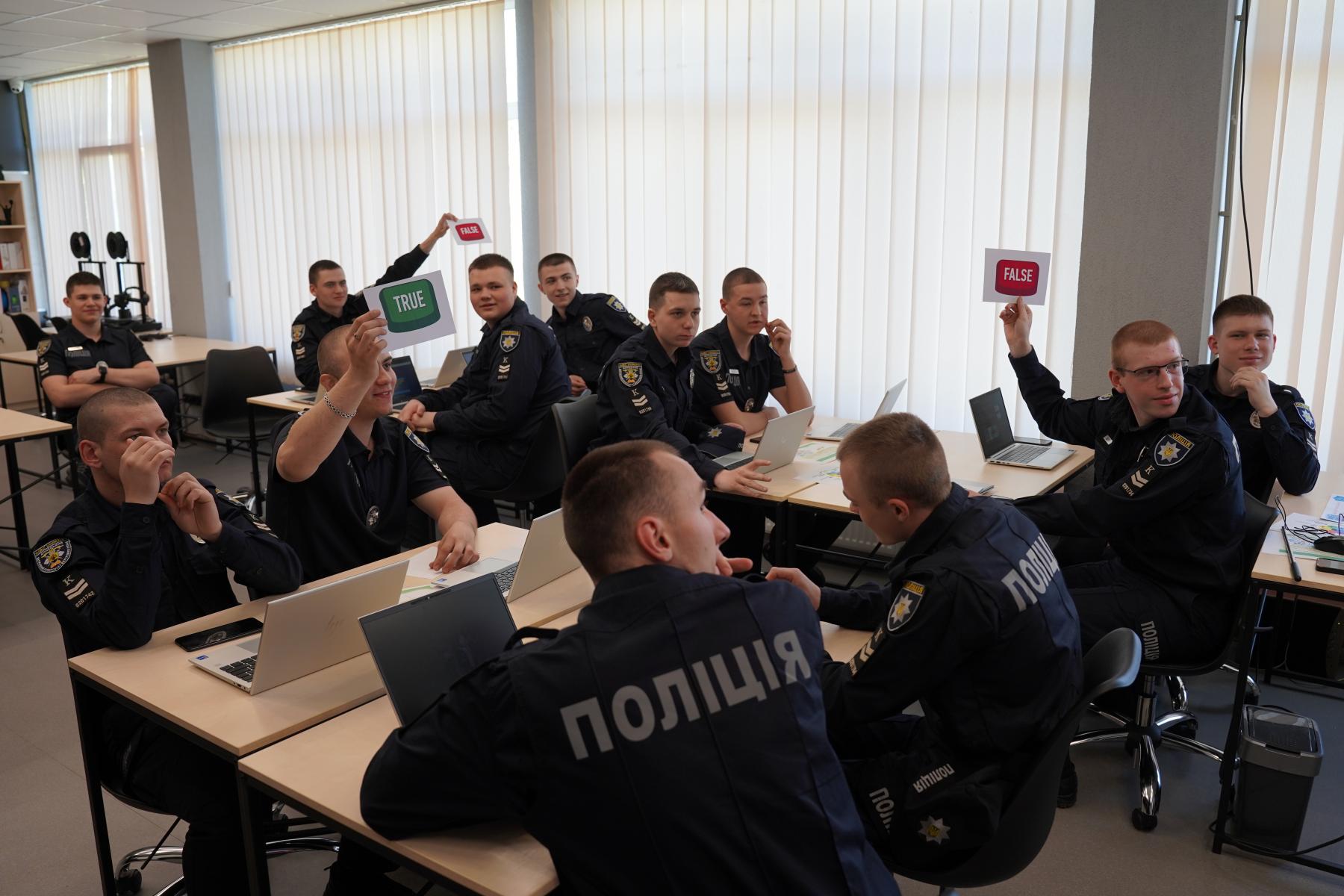 Курсанти та курсантки виконали інтерактивні завдання, спрямовані на виявлення фейків, розпізнавання шкідливих акаунтів у соціальних мережах.