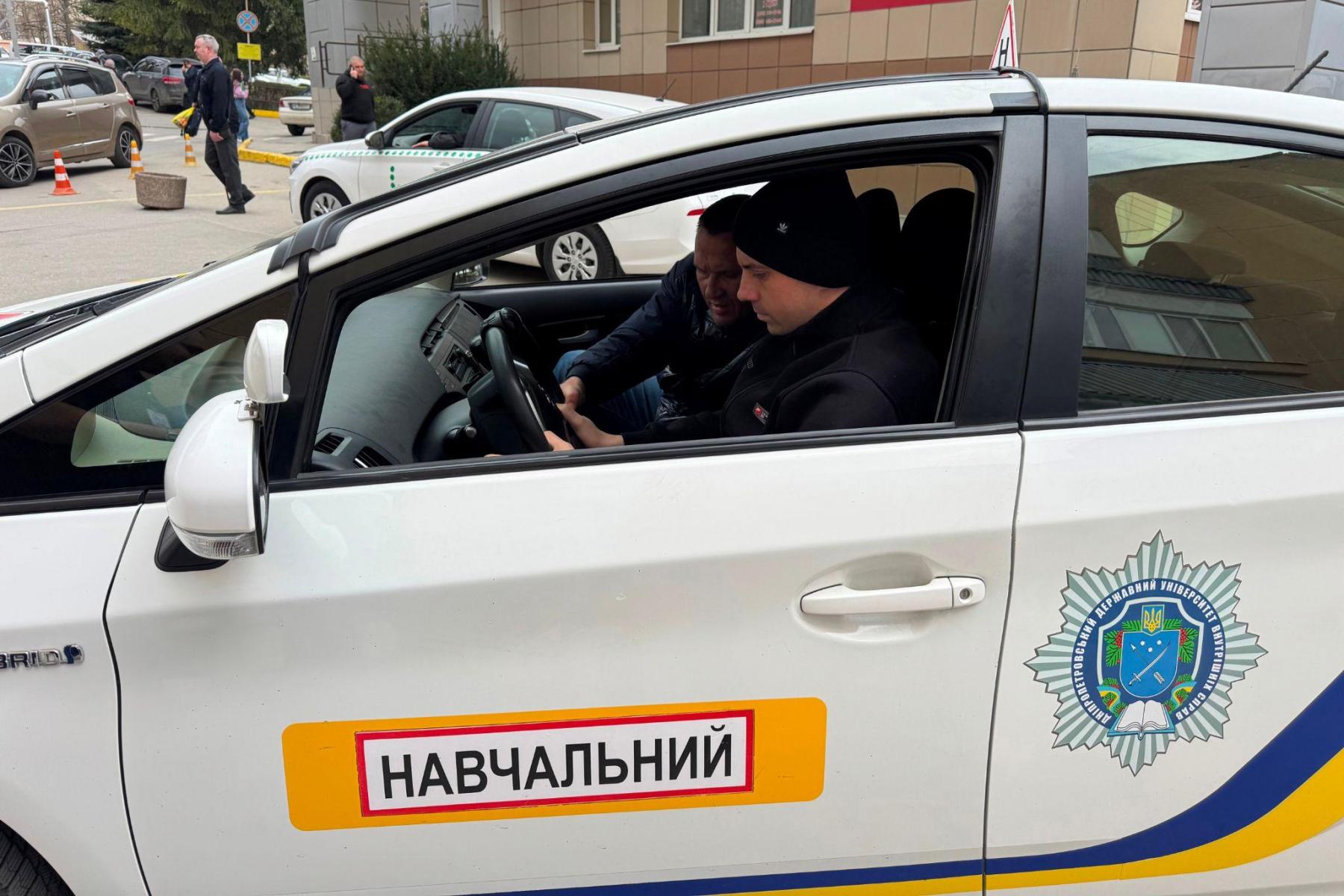 Практична складова заходу передбачала безпосереднє знайомство з навчальною матеріальною базою: учасники поспілкувалися з водієм-інструктором, оглянули спеціально адаптований автомобіль, який використовується у навчанні, а також мали можливість випробувати себе у керуванні.