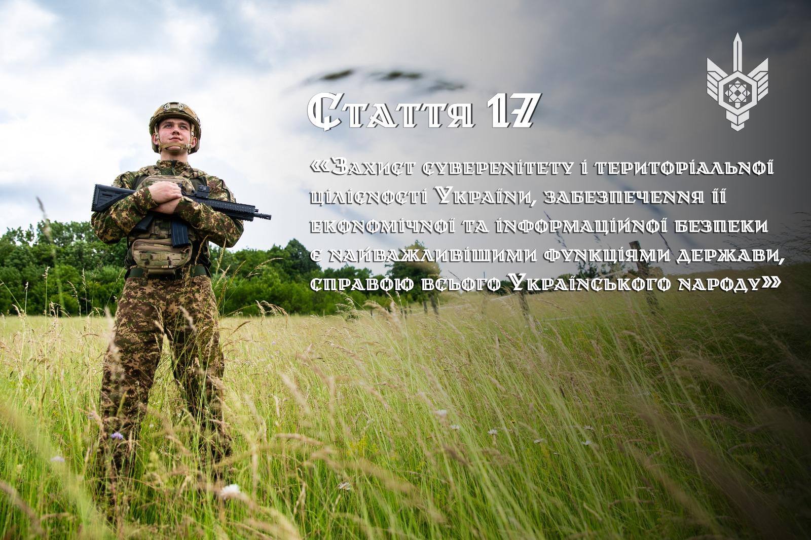 Стаття 17. "Захист суверенітету і територіальної цілісності України, забезпечення її економічної та інформаційної безпеки є найважливішими функціями держави, справою всього Українського народу."