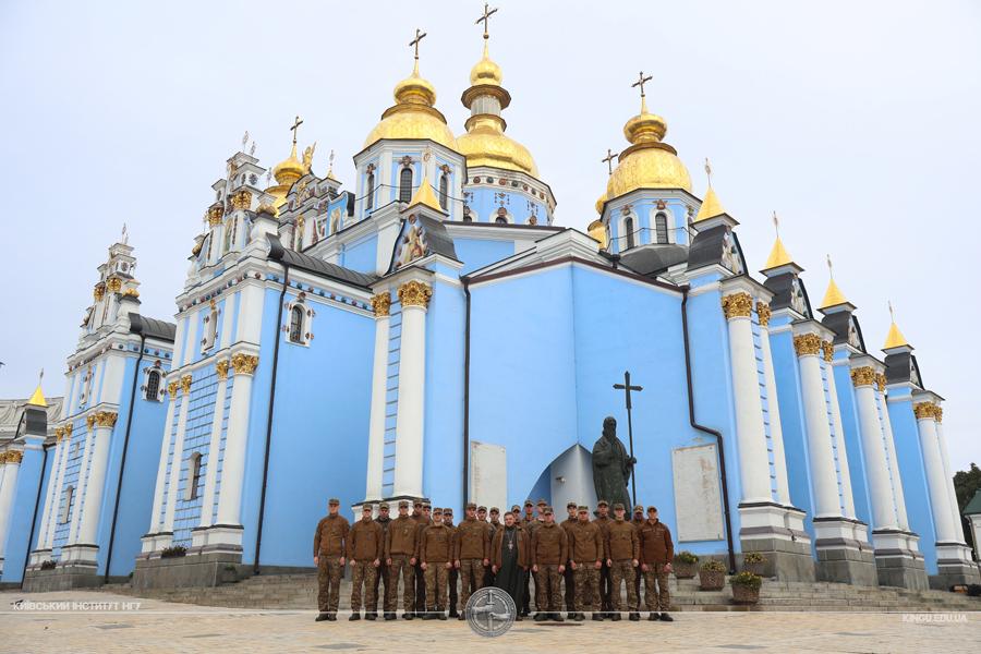 Також майбутні офіцери відвідали Золотоверхий Михайлівський монастир. Поїздку організував капелан інституту отець Сергій. Богослужіння цього урочистого дня очолив Предстоятель Православної Церкви України, Блаженніший Епіфаній, Митрополит Київський і всієї України. Під час спільної молитви курсанти схилили голови, просячи в Пресвятої Богородиці заступництва, захисту та сили для вірного служіння Батьківщині.