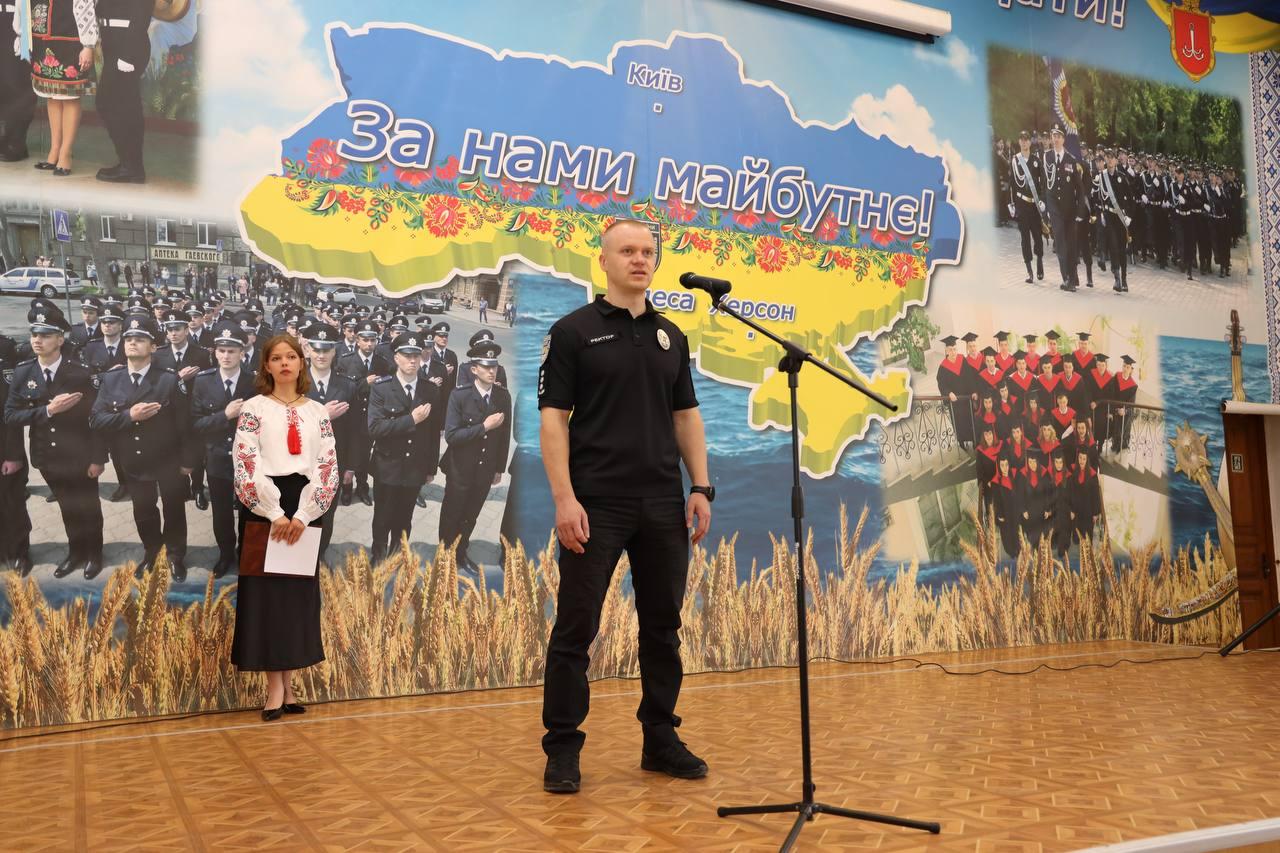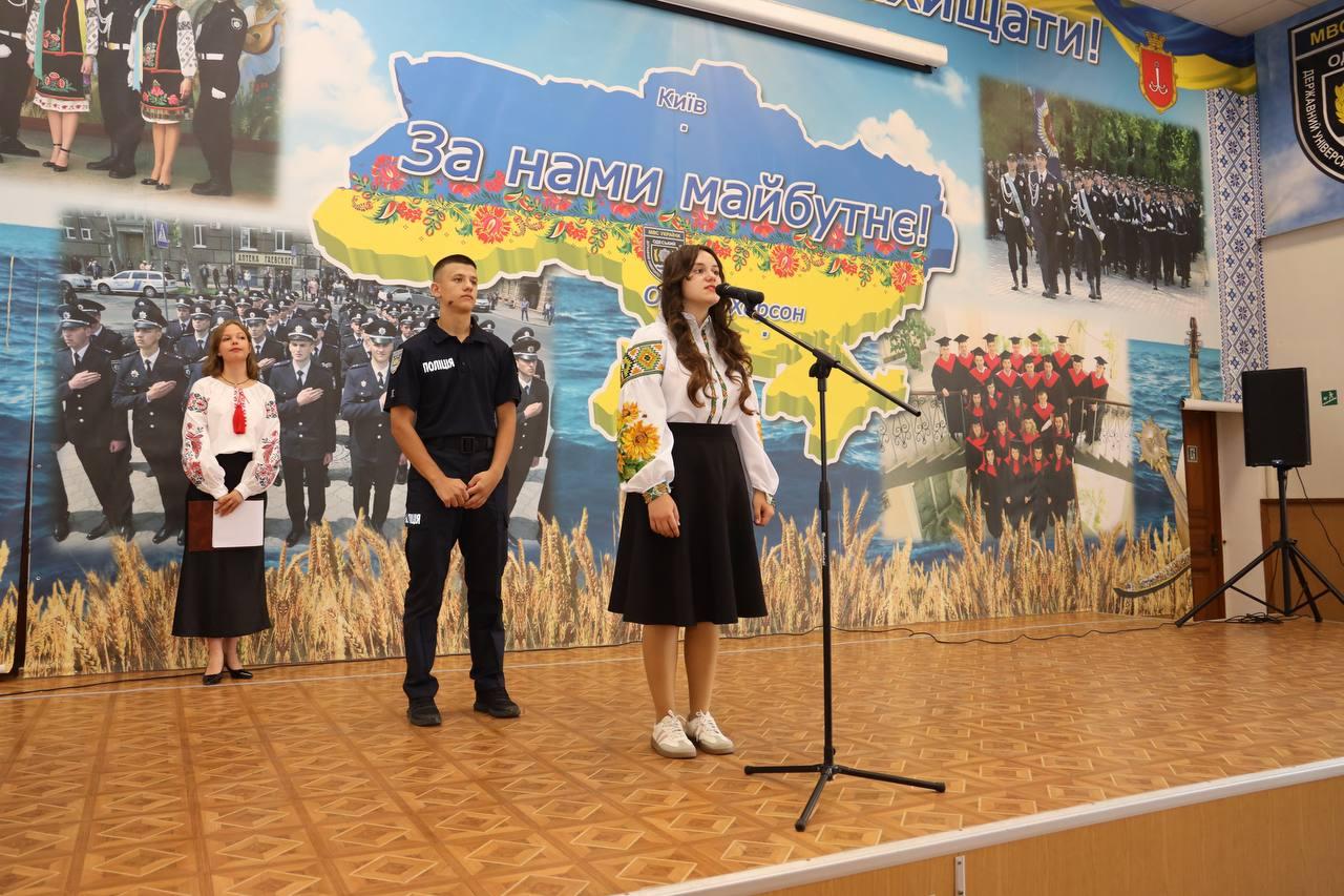 З вітальними промовами також виступили представники студентського самоврядування та першокурсники, які пообіцяли сумлінно опановувати знання й гідно нести звання курсанта та студента ОДУВС.