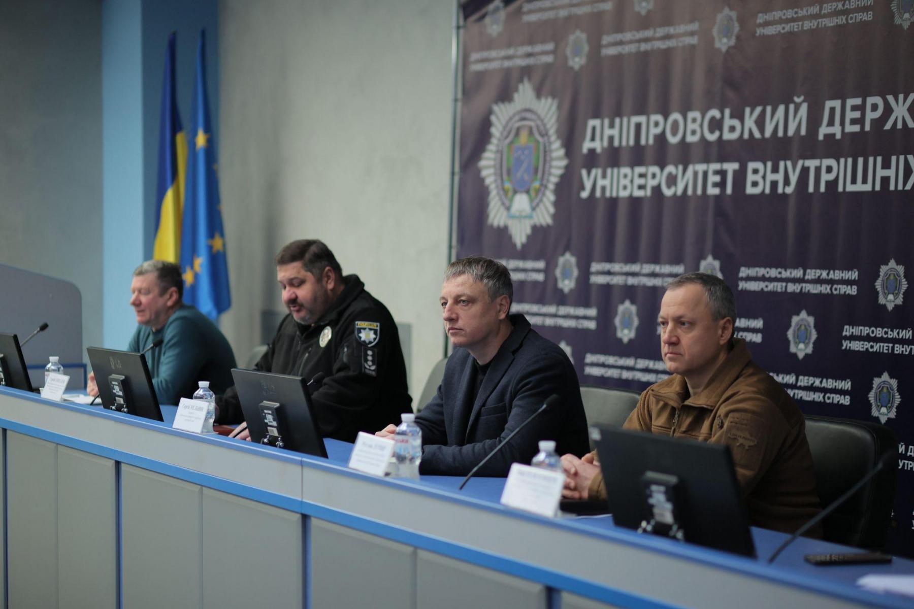 Участь у заході взяли проректор ДДУВС Сергій Мельник, директор інституту, полковник поліції Сергій Обшалов, уповноважений з антикорупційної діяльності університету Руслан Лупир, завідувач відділення психологічного забезпечення Сергій Вишневський, завідувач відділення моніторингу ДДУВС, майор поліції Іван Павловцев.
