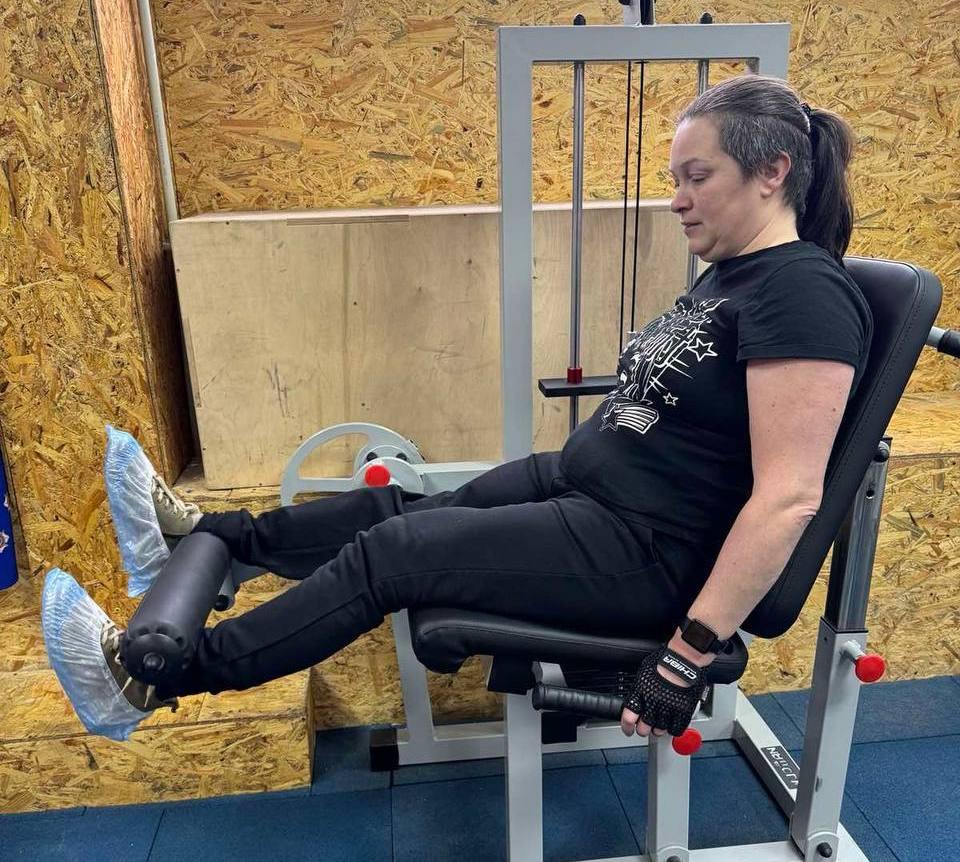 Заняття за спеціальною програмою з кваліфікованим фахівцем сприяють адаптації і покращенню фізичної форми учасниці тренувань. Разом із наставником вона виконала вправи щодо укріплення м’язів ніг для підтримки протеза та загального тонусу м’язів із використанням тренажерів.