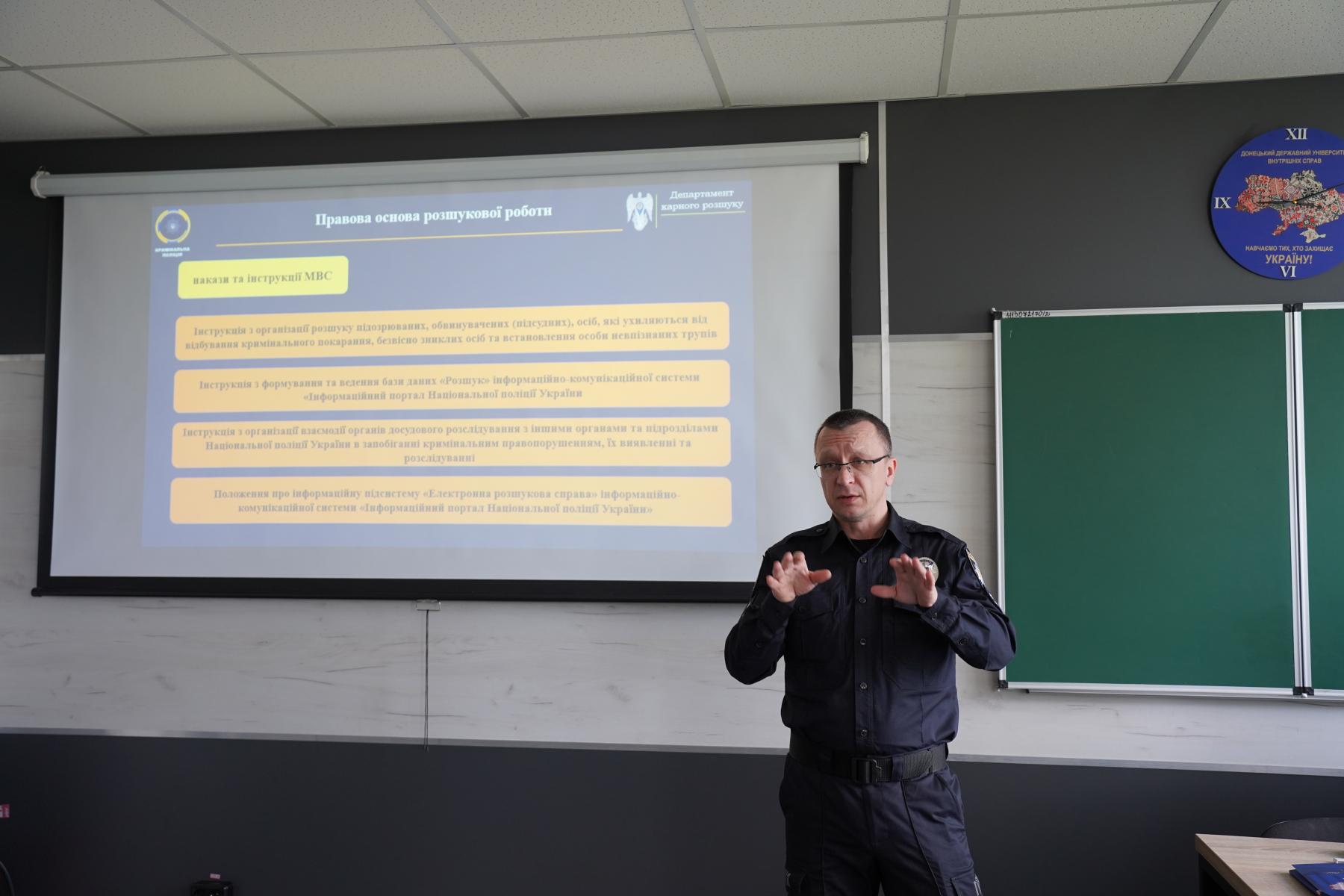 Протягом навчання курсанти та курсантки ознайомилися з особливостями організації службової діяльності оперуповноважених карного розшуку, їх матеріально-технічними ресурсами, сучасними особливостями виявлення і документування злочинів в умовах правового режиму воєнного стану, напрямами взаємодії з іншими правоохоронними органами, які входять до складу сил безпеки та оборони України, при проведенні стабілізаційних й безпекових заходів.