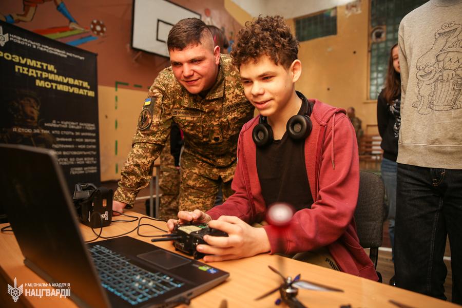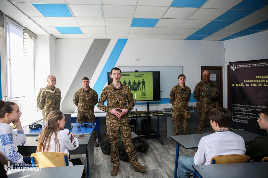 «Наша ціль – донести молоді, що Нацгвардія – це сучасні технології, розвиток і перспективи. Я сподіваюся, що сьогодні ми змогли надихнути когось зі школярів обрати шлях офіцера», – ділиться курсант.