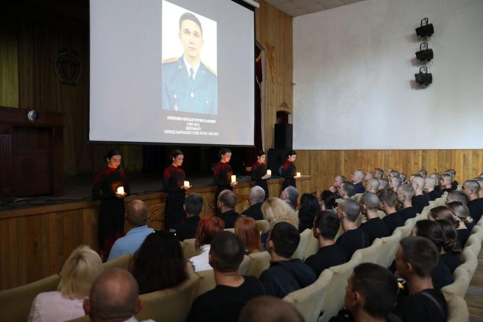 «Мужність і героїзм воїнів назавжди залишаться в нашій пам’яті. Війна триває, щодня гинуть наші захисники, багато хто отримує поранення. Ми повинні усвідомлювати, що пам'ять – це не лише слова, а й конкретні дії. Сьогодні в системі МВС створено ліцеї безпекового спрямування та національно-патріотичного виховання, де навчаються діти загиблих захисників і захисниць, які служили в ЗСУ та підрозділах Сил безпеки і оборони. Для них організовано найкращі умови, вони отримують якісну освіту та, за бажання, можуть вступати за передбаченими пільгами до закладів вищої освіти МВС. Ми не просто маємо пам’ятати про родини загиблих героїв – ми повинні допомагати та підтримувати їх. Це наш обов’язок», – підкреслив ректор.