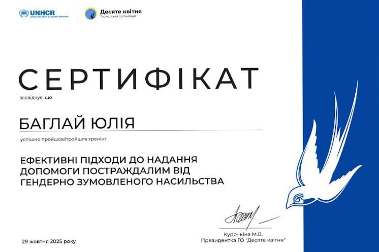 Під час навчання учасниці ознайомилися з основними аспектами гендерно зумовленого та домашнього насильства, його причинами, формами й наслідками. Також вони розглянули принципи надання допомоги постраждалим, механізми міжвідомчої взаємодії, сучасні підходи до реагування на випадки насильства за ознакою статі та алгоритми комплексної підтримки.