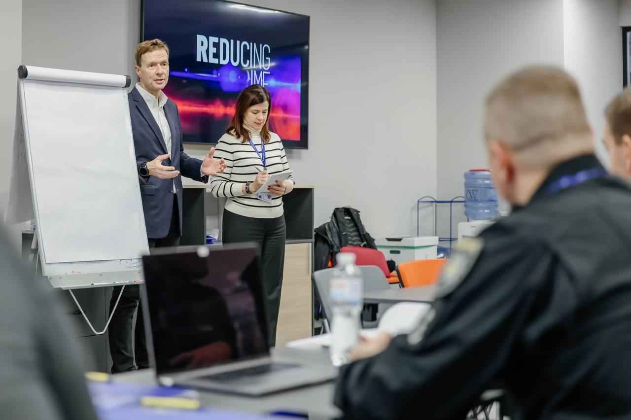 Начальник аналітичного відділу (Центр кримінальної аналітики) Дмитро Овсянюк і начальник відділу аспірантури (ад'юнктури) і докторантури Олена Тихонова долучилися до тренінгу зі зниження рівня злочинності.