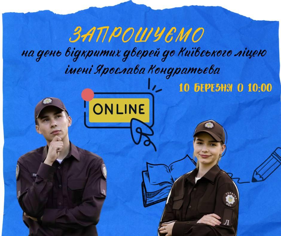 Київський ліцей безпекового спрямування та національно-патріотичного виховання запрошує майбутніх ліцеїстів та їхніх батьків на День відкритих дверей 10 березня 2025 року о 10:00 в онлайн-форматі!