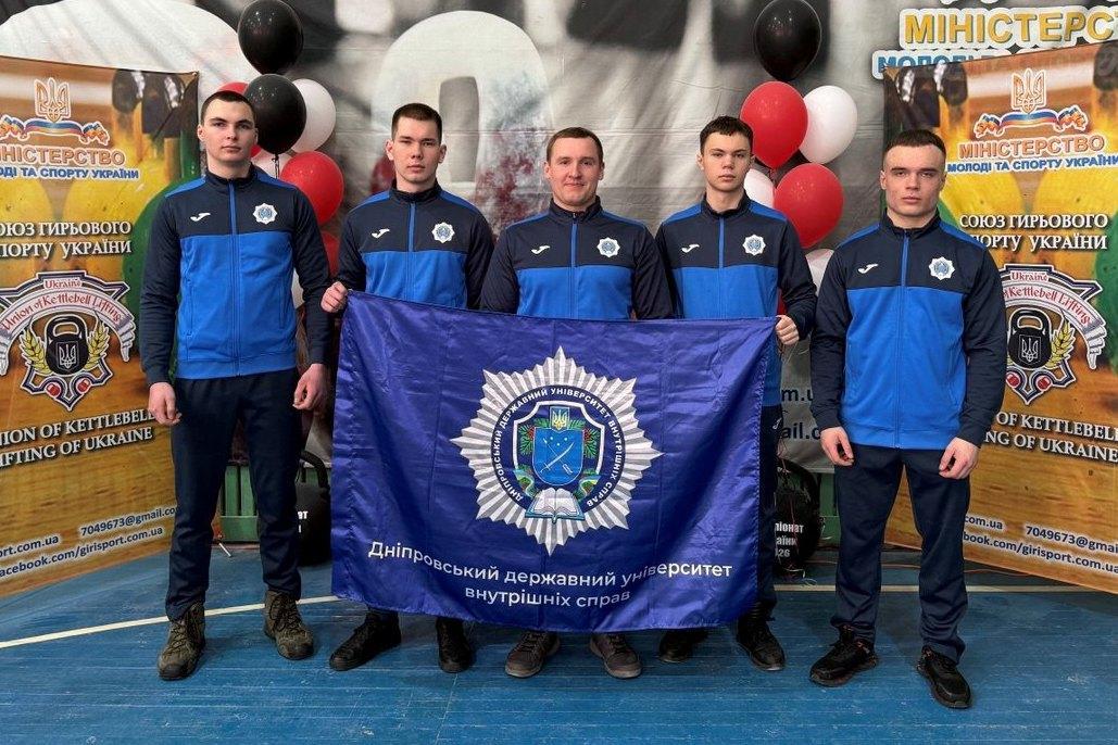 На чемпіонаті України з гирьового спорту серед чоловіків, жінок та молоді (юніорів та юніорок) Дніпровський державний університет внутрішніх справ представляла команда з чотирьох осіб – курсантів Артема Дудки, Романа Губи, Олександра Каряки та Владислава Мартинюка. Спортсмени виступали під наставництвом доцента кафедри спеціальної фізичної підготовки, капітана поліції Дмитра Анісімова.