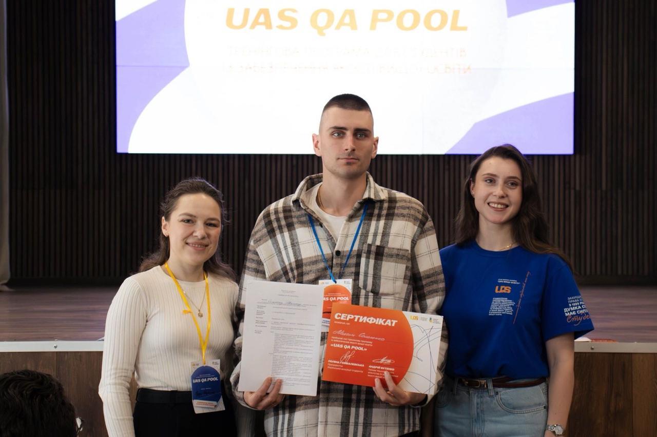 Нещодавно курсант факультету забезпечення державної безпеки Максим Солопенко взяв участь у тренінговій програмі UAS QA Pool, організованій Українською асоціацією студентів спільно з Національним агентством із забезпечення якості вищої освіти. Захід відбувся на базі Донецького державного університету внутрішніх справ.