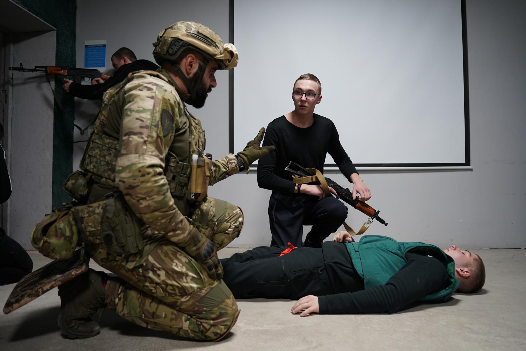 Медик батальйону спеціальних операцій «Еней» бригади Національної поліції «Лють» Олексій за позивним «Добрий» та інструктор Кіровоградського обласного центру підготовки населення до національного спротиву Роман за позивним «Начкар» відпрацювали з курсантами умовну зачистку будівлі, де внаслідок штурмових дій є поранений. Постраждалому надали допомогу з урахуванням: обстановки; зони, у якій знаходився потерпілий; кваліфікації медика, який працював у групі.