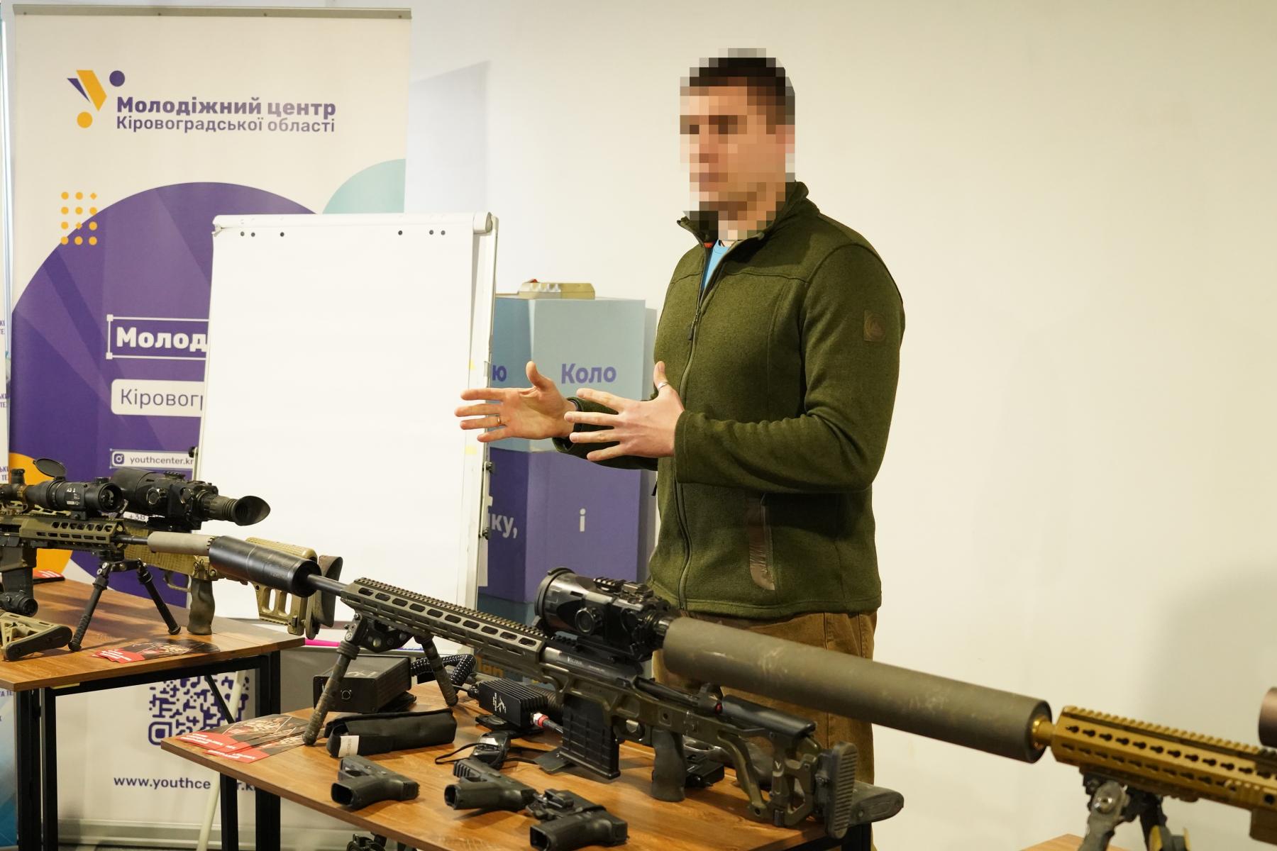 Здобувачі та здобувачки вищої освіти приміряли бронежилети і ознайомилися зі зброєю спецпризначенців: снайперськими гвинтівками, автоматами, пістолетами тощо.