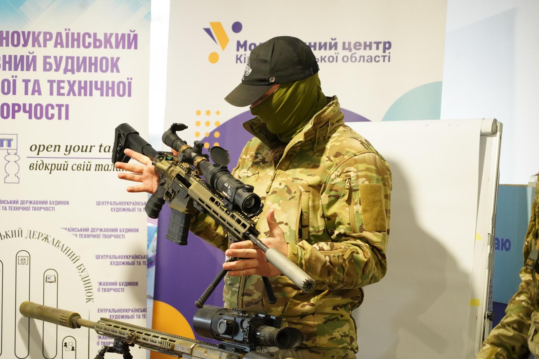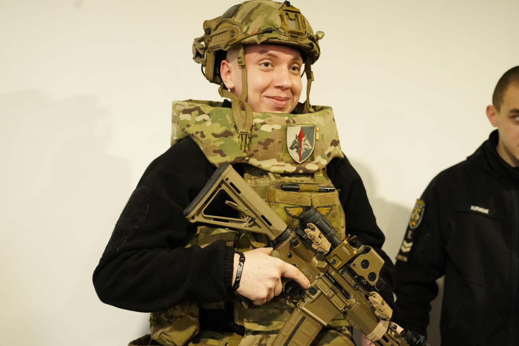 Бійці з позивними «Мойсей», «Док», «Борода» розповіли про службу та продемонстрували озброєння й спорядження, яке використовують на бойових завданнях.