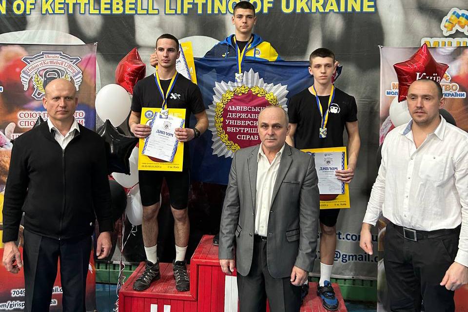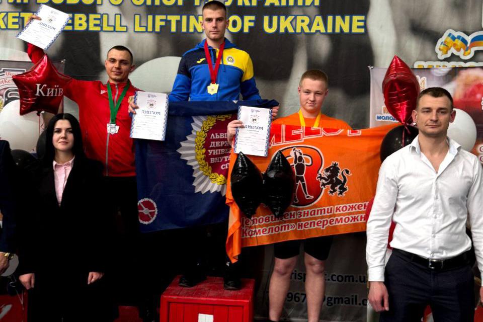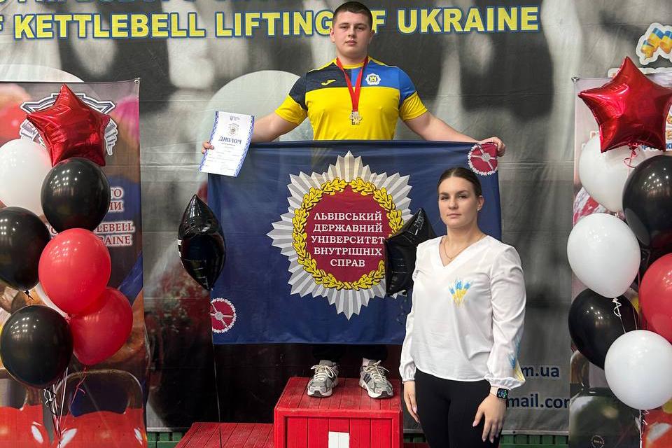 У вправі поштовх у категорії 95 кг «золото» здобув Михайло Костик, вихованець 2-го курсу Навчально-наукового інституту з підготовки фахівців для підрозділів кримінальної поліції.