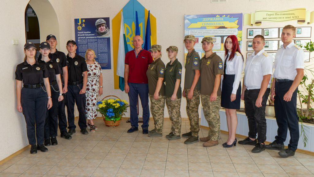 Курсанти поклали квіти до меморіальної дошки у школі, де навчався воїн, та у ліцеї з посиленою військово-фізичною підготовкою імені Віталія Грицаєнка.