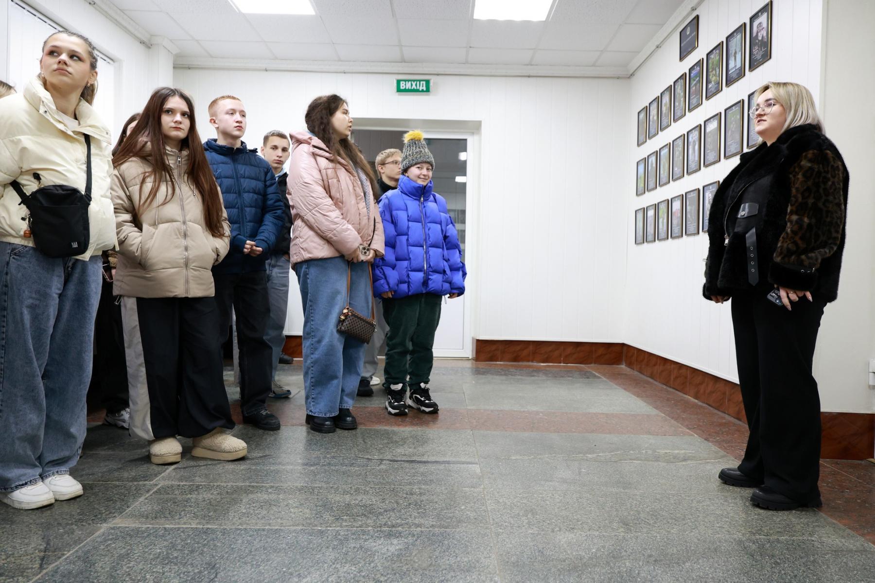 Далі старшокласники завітали до фоє Центру дозвілля, де облаштовано Місце шани й пам’яті, присвячене загиблим українським захисникам і захисницям.